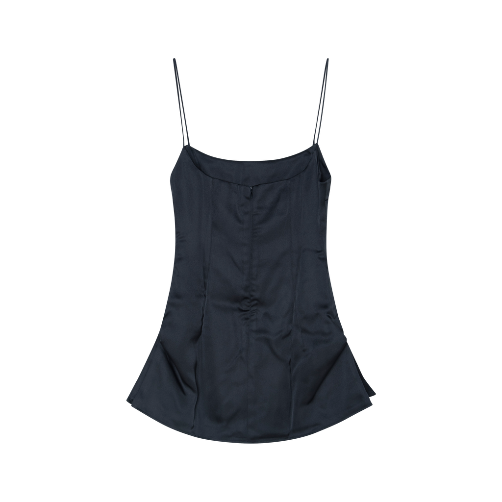 Gabrielle Dress - Black features slim fit, straight front and back, non-stretch fabric, spaghetti straps, slit on both sides, and back zip.