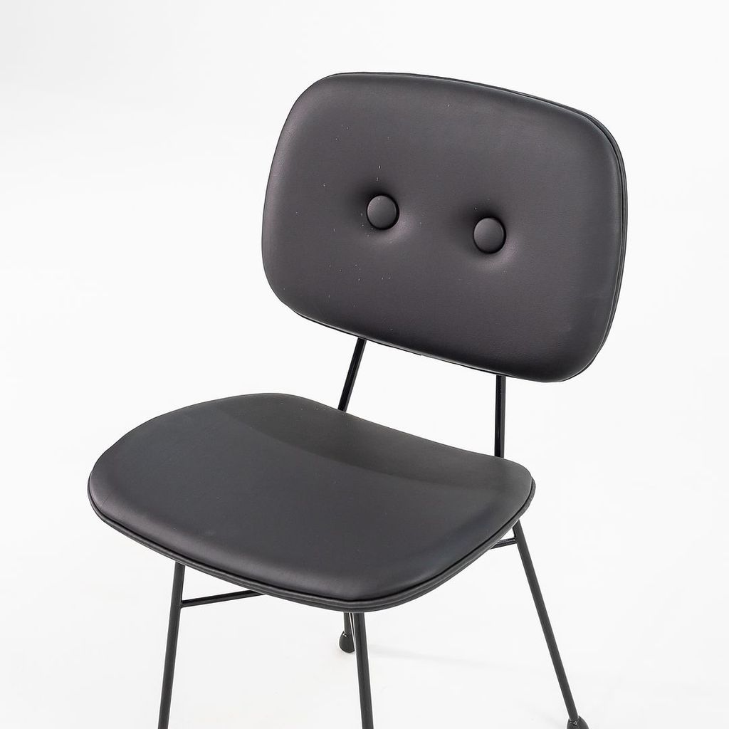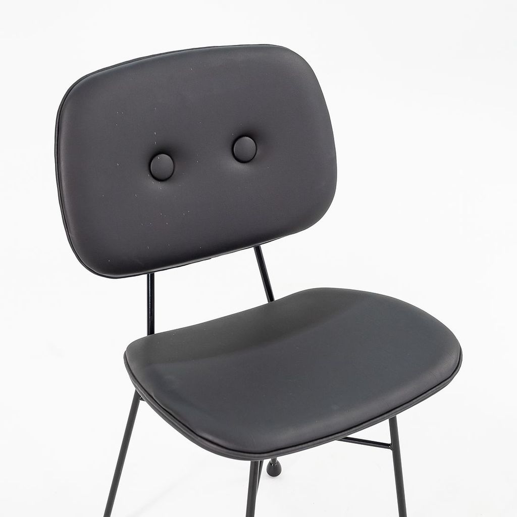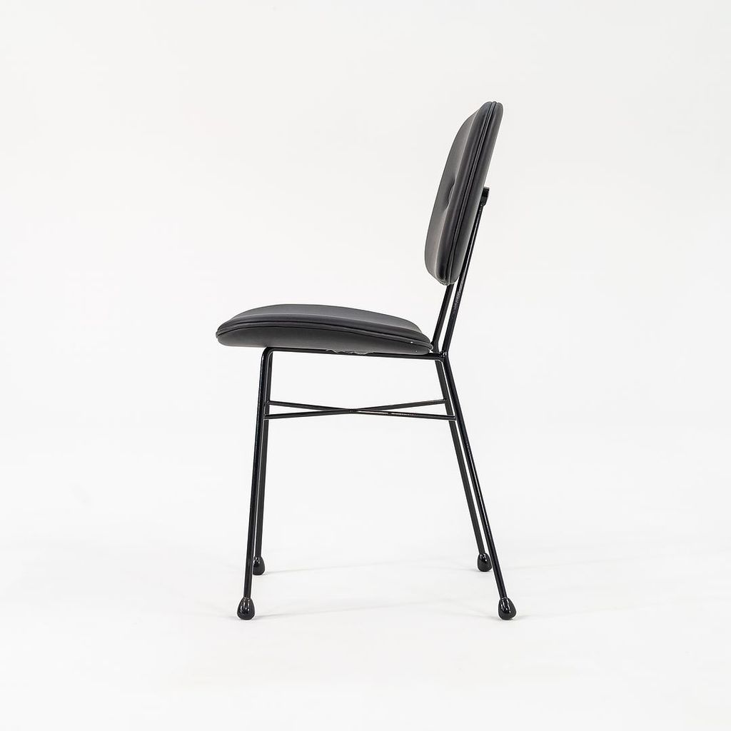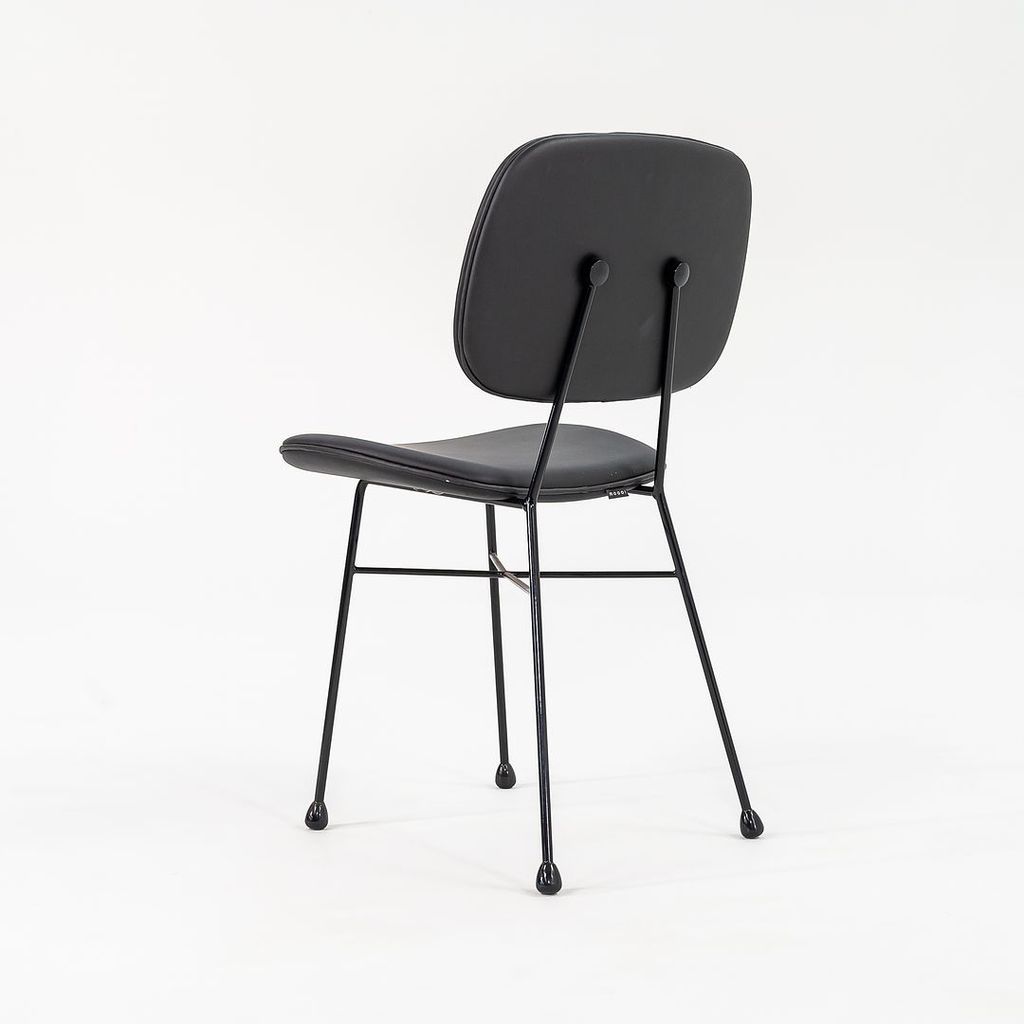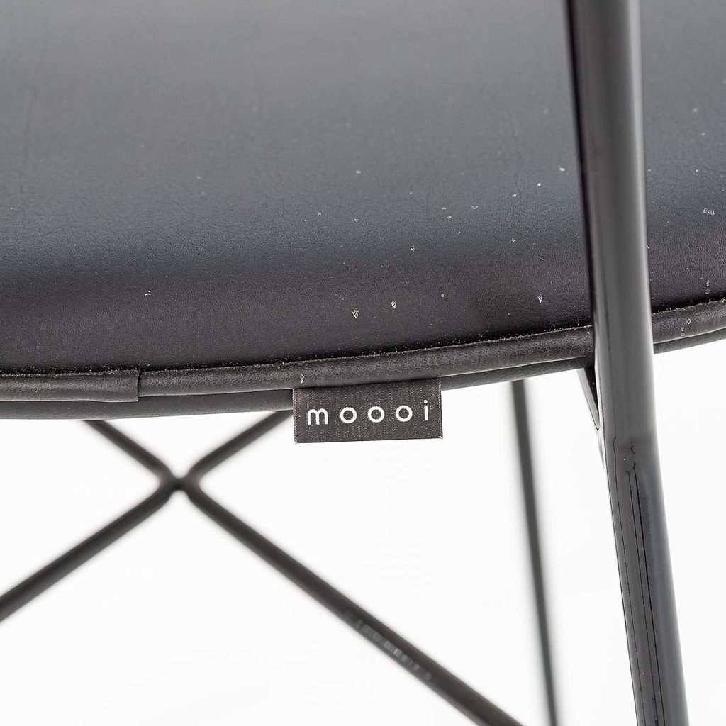 Listed for sale is a Golden Dining Chair made with a black steel frame and black leather upholstery. The chair was designed by Nika Zupanc and produced by Moooi in the Netherlands. It dates to circa 2022 and is guaranteed as authentic. Condition is very good to excellent. It has some small white spots on the upholstery that we should can try to remove prior to shipping. See photos.