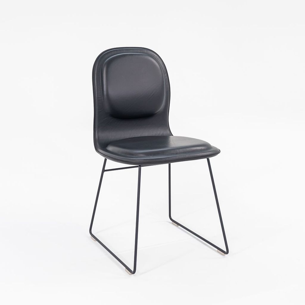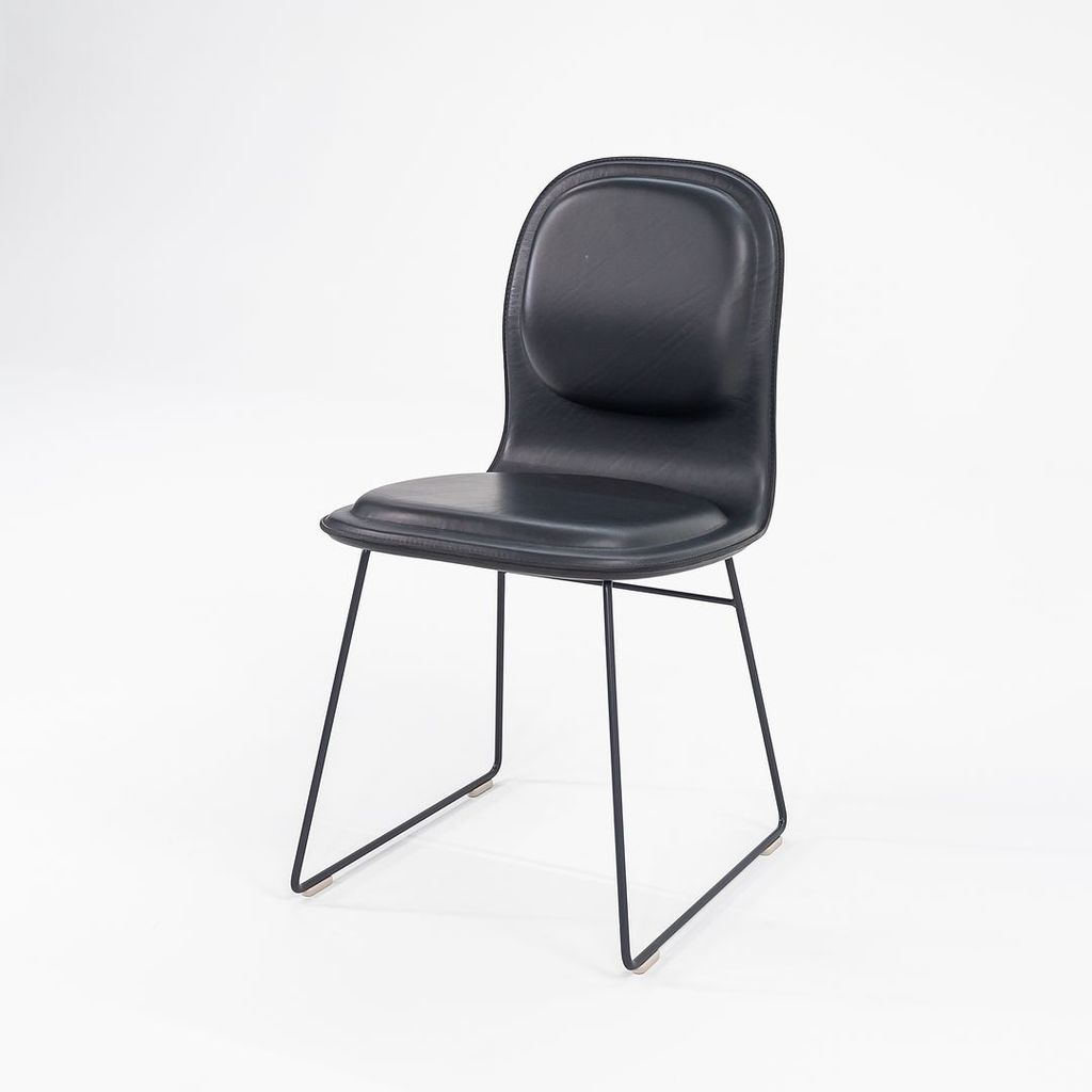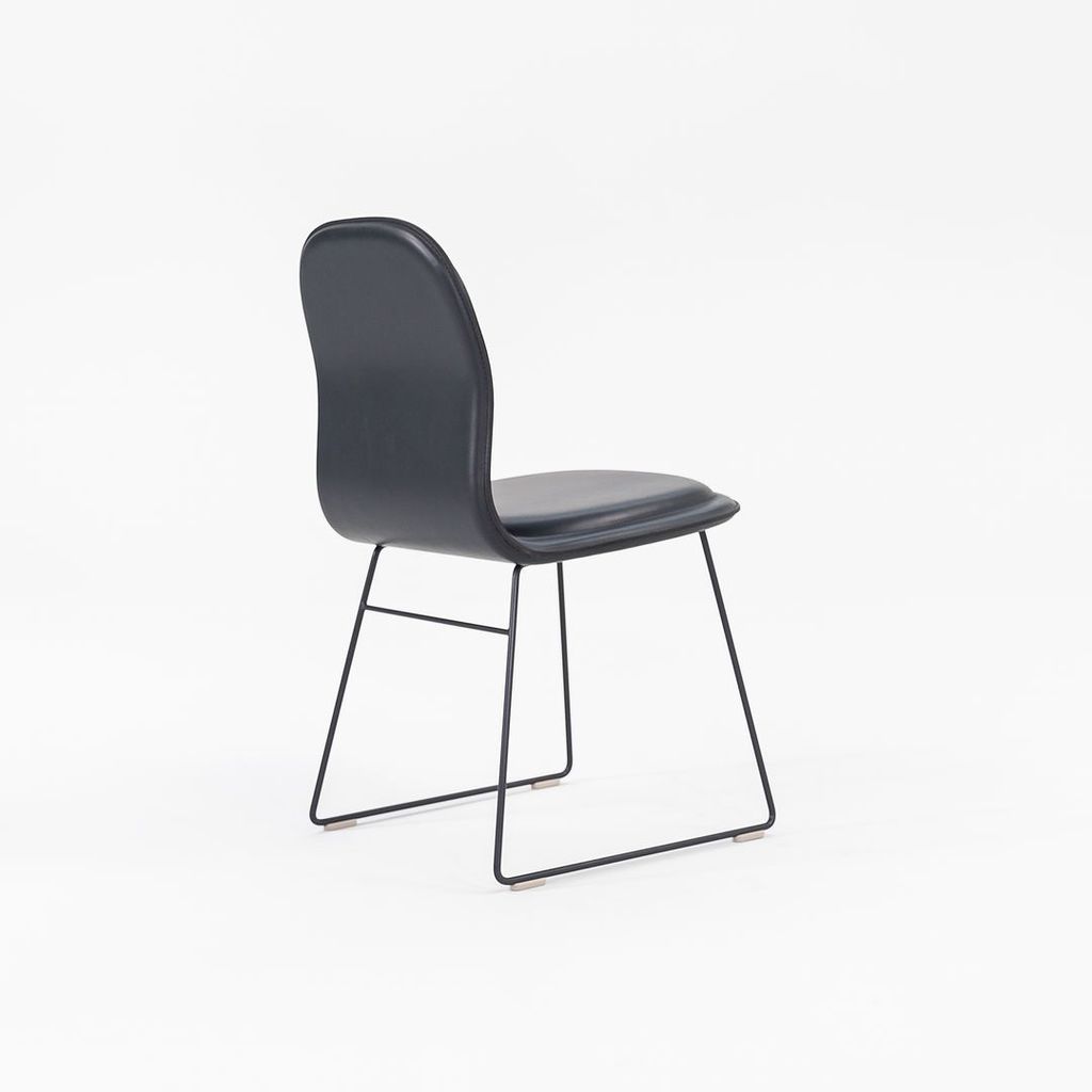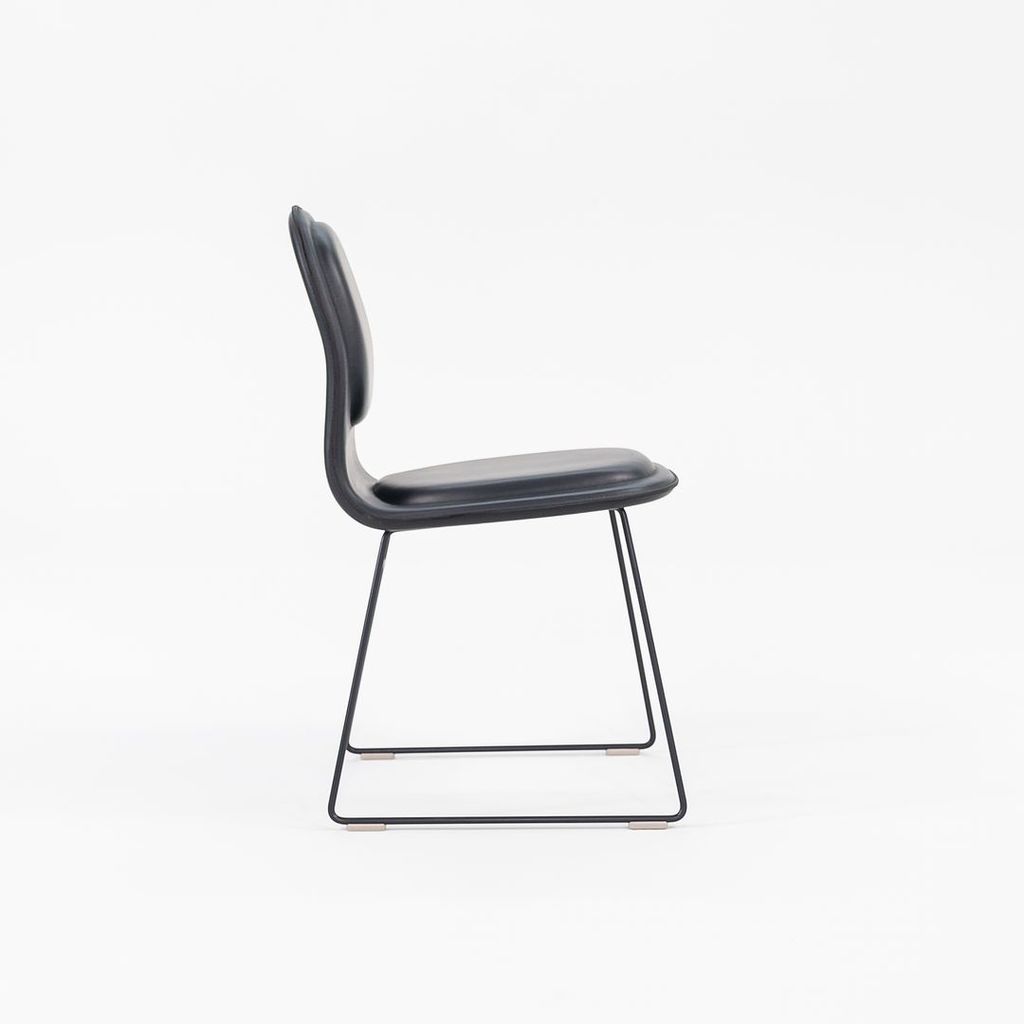 Listed for sale is a Hi Pad dining chair made with a black stainless steel base and black leather seat. The chair was designed by Jasper Morrison and produced by Cappellini in Italy. It dates to circa 2022 and is guaranteed as authentic. Condition is good to excellent. See photos.
