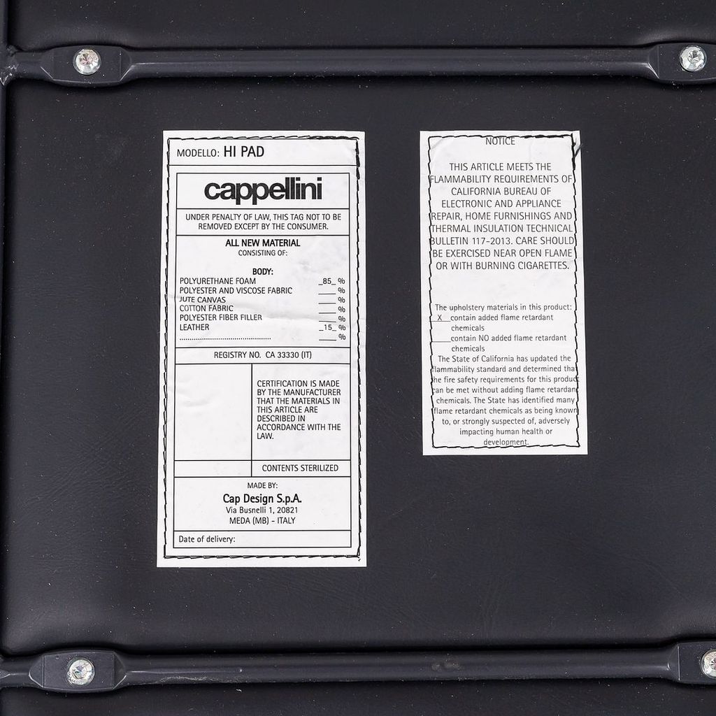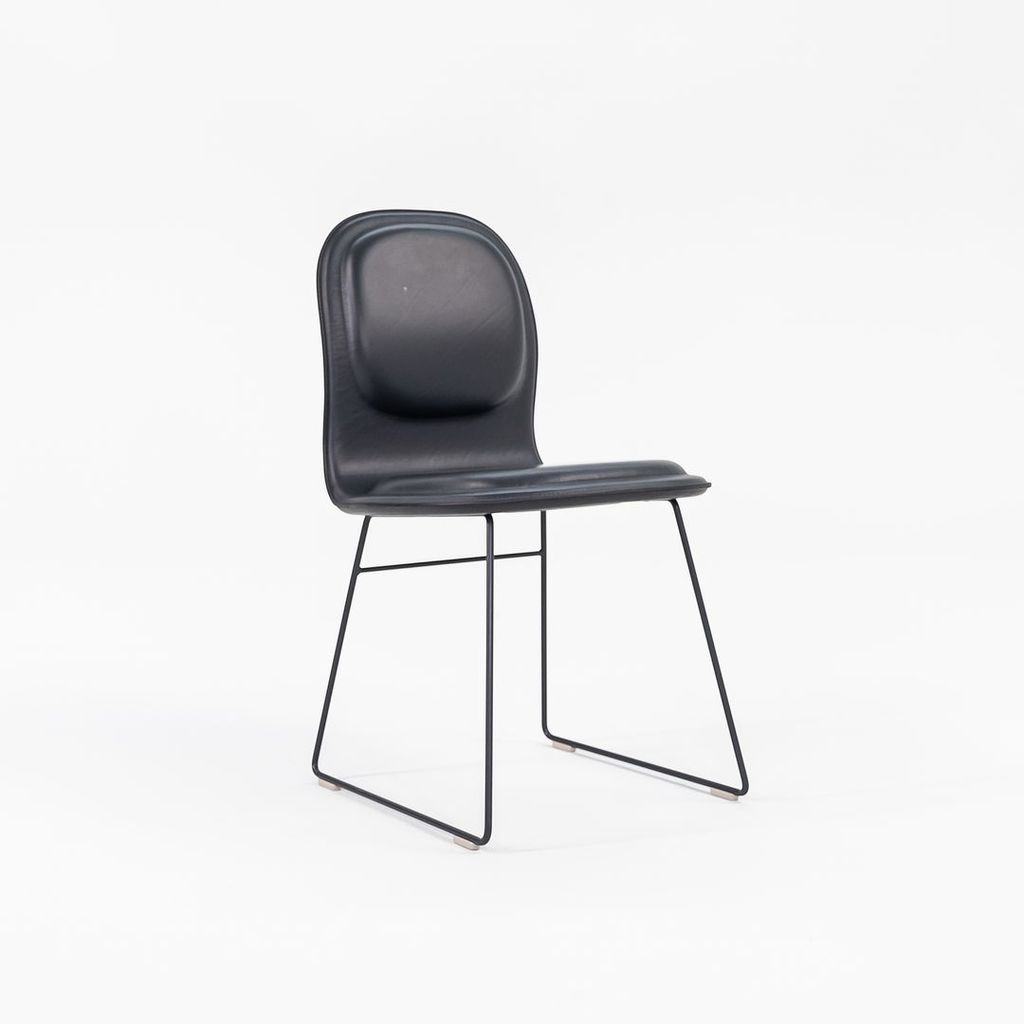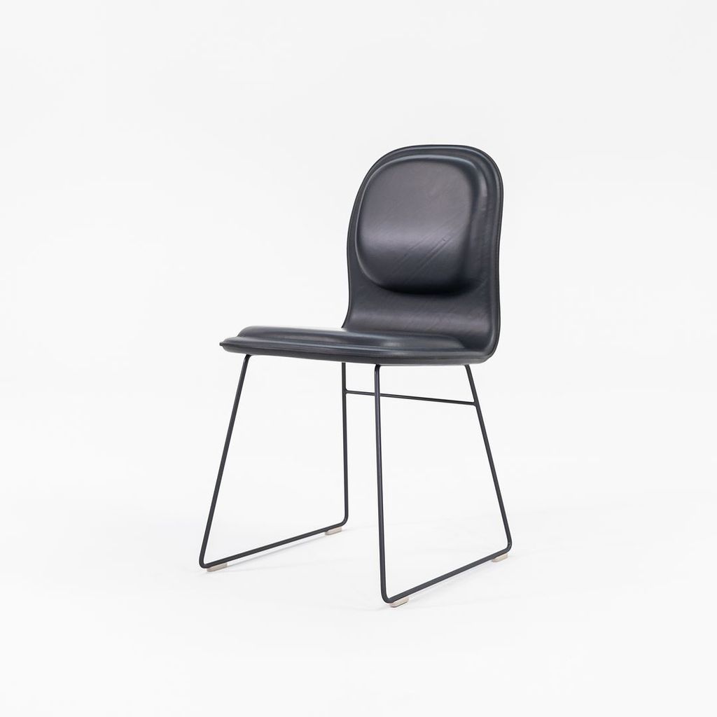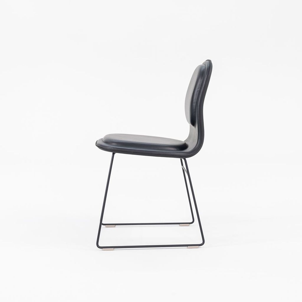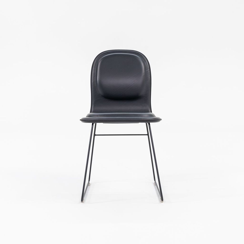 Listed for sale is a Hi Pad dining chair made with a black stainless steel base and black leather seat. The chair was designed by Jasper Morrison and produced by Cappellini in Italy. It dates to circa 2022 and is guaranteed as authentic. Condition is good to excellent. See photos.