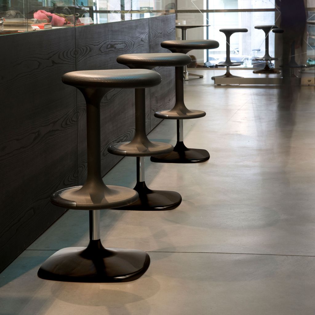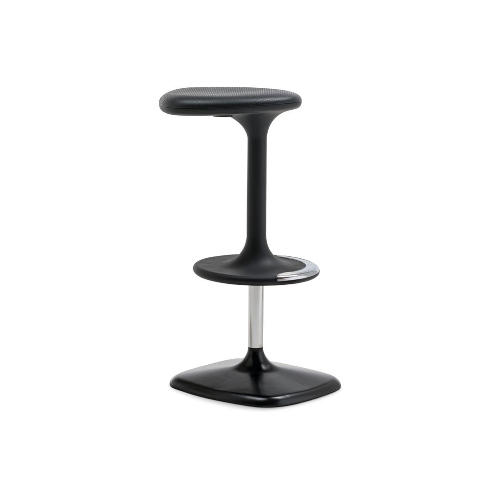 Black Kant Lift Stool features organic rounded design and foot rest.