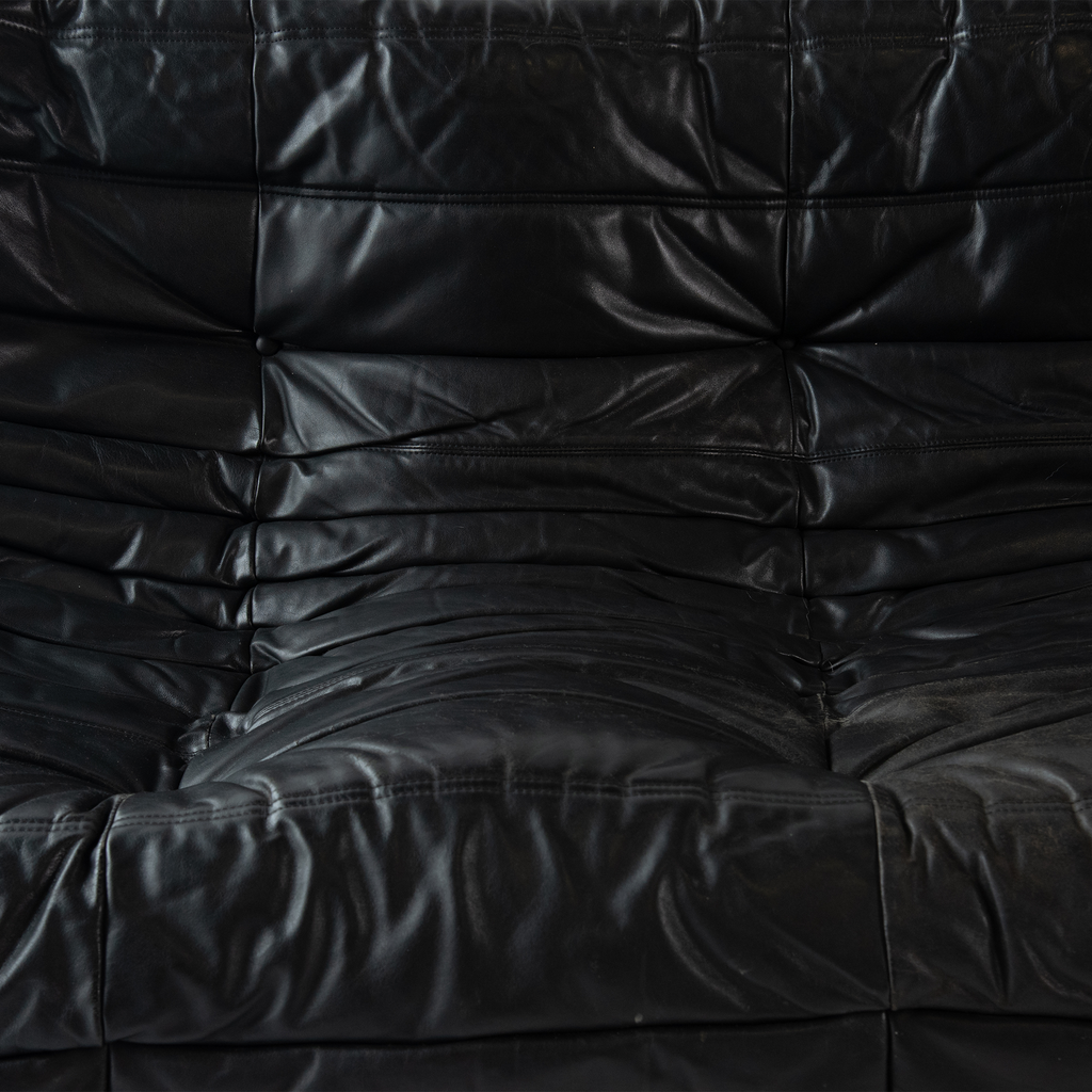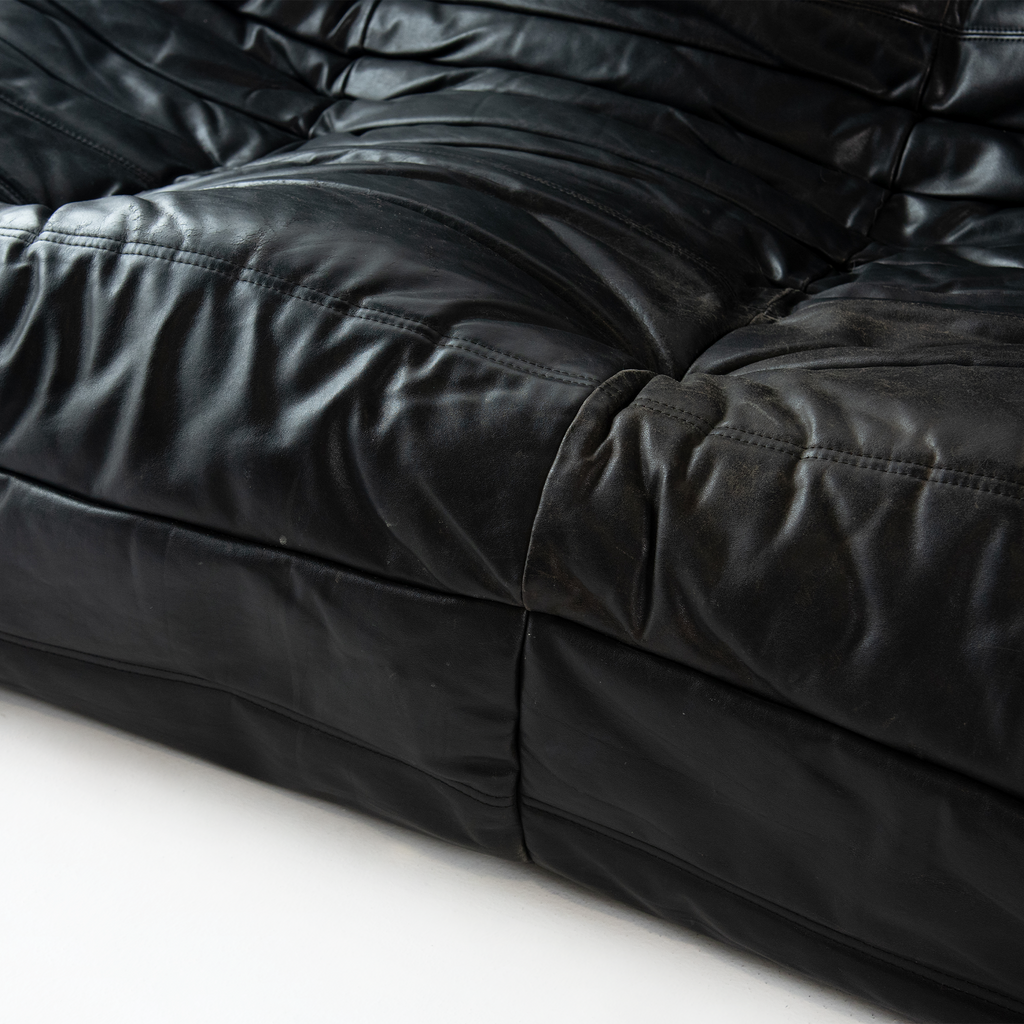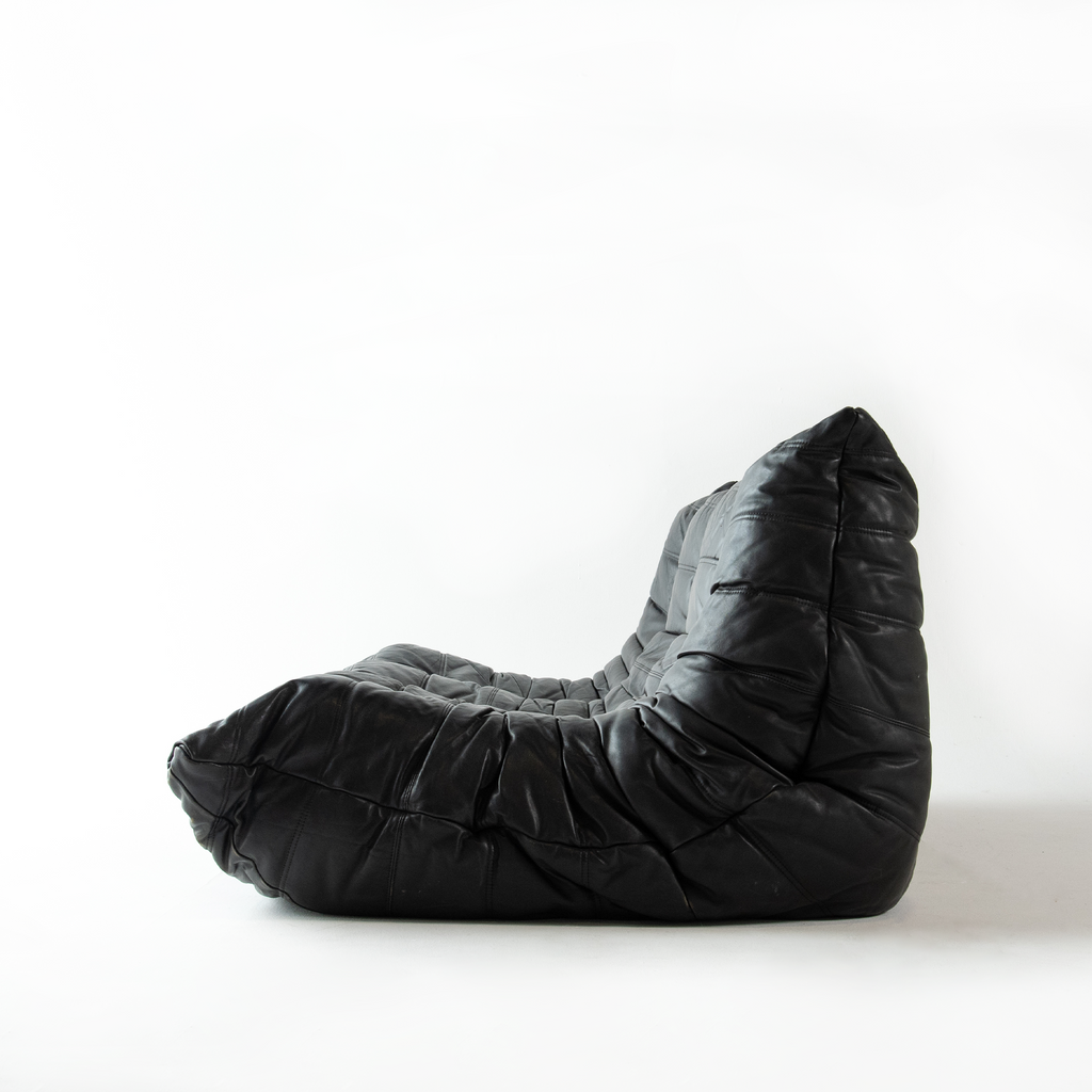 Black Leather Togo by Michel Ducaroy for Ligne Roset, 1970s.