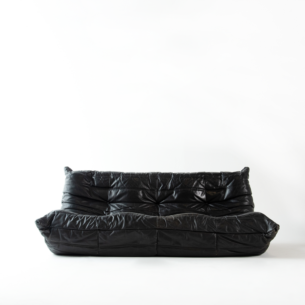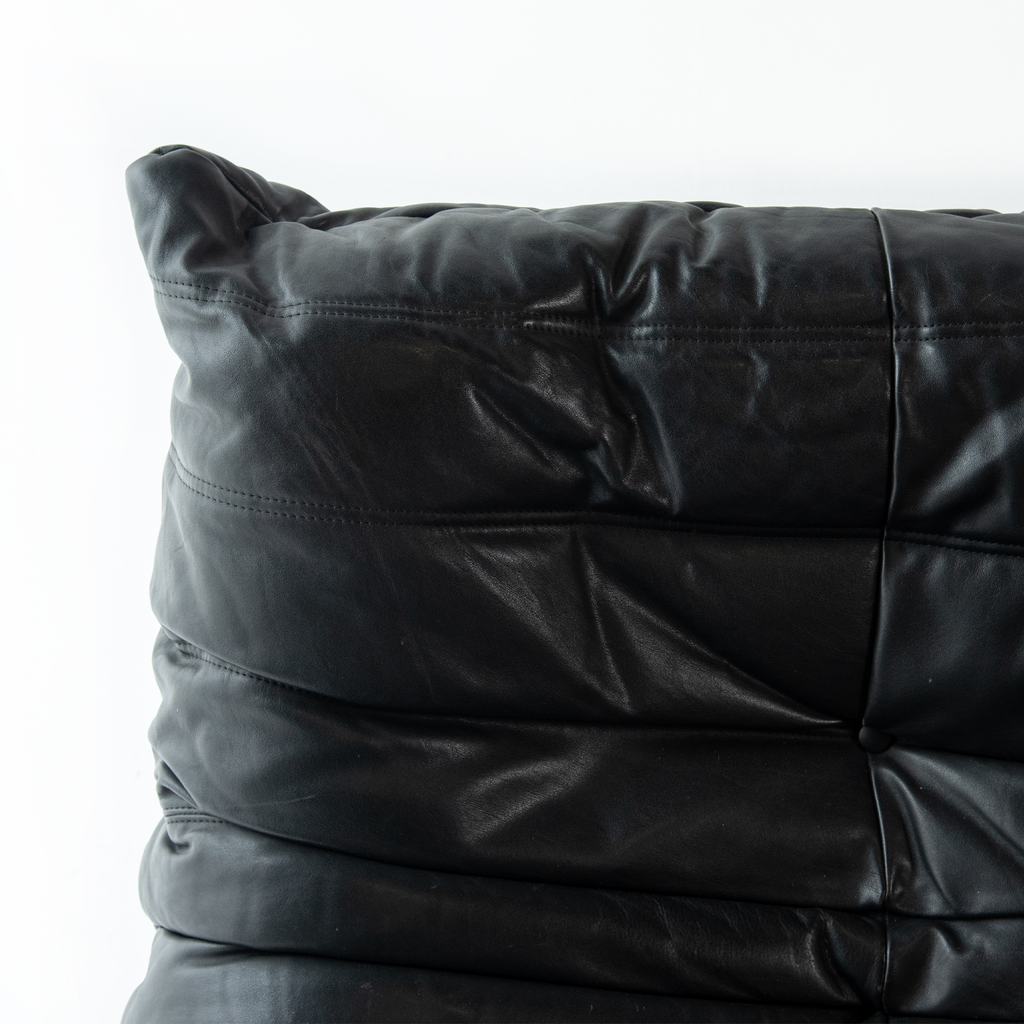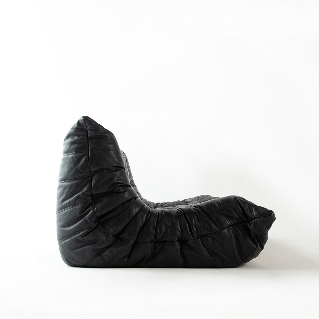 Black Leather Togo by Michel Ducaroy for Ligne Roset, 1970s.