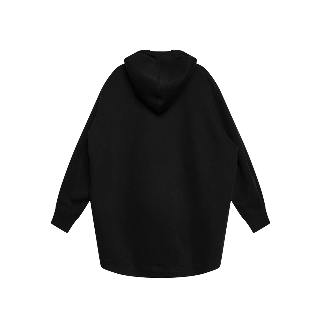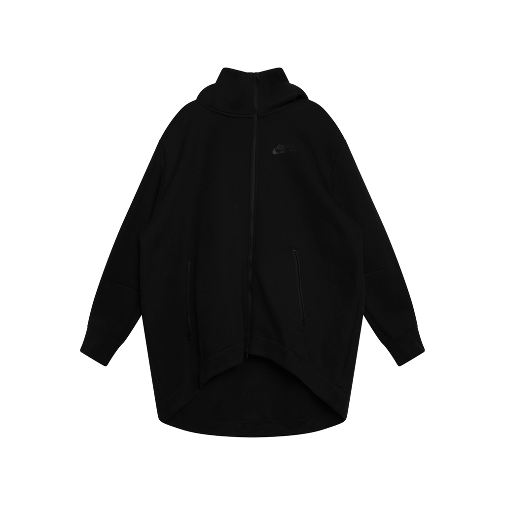 Black Nike Tech Hoodie features full zipper closure, two side pockets.