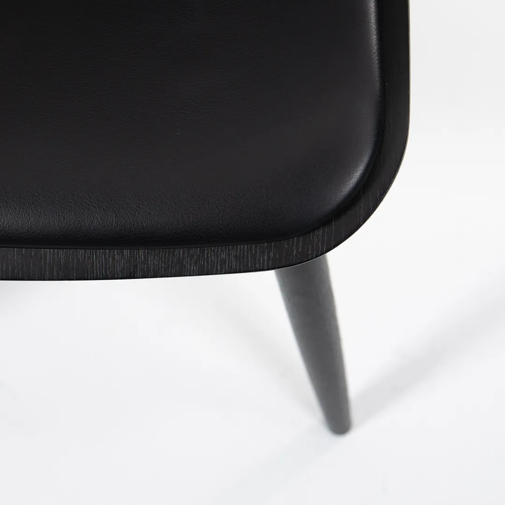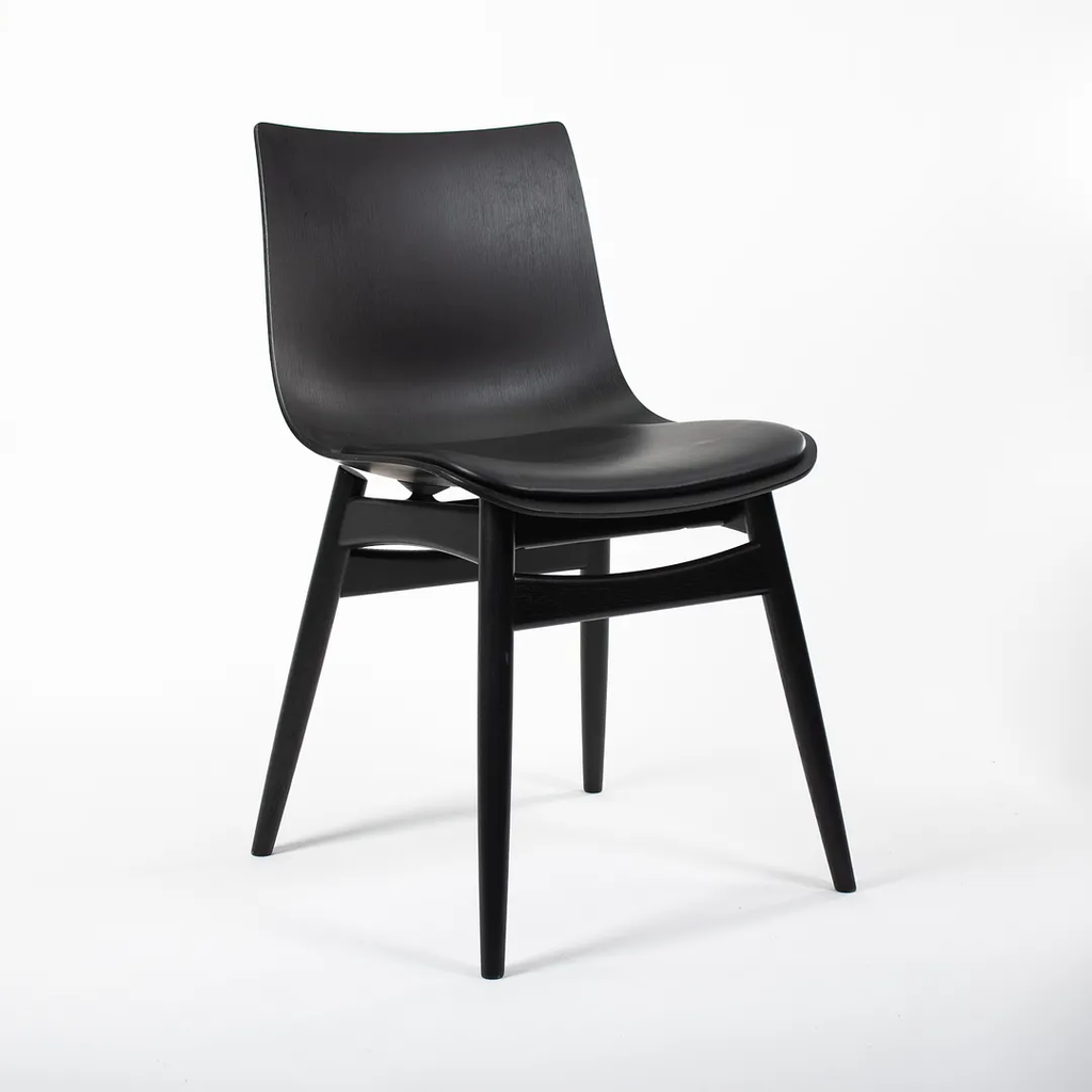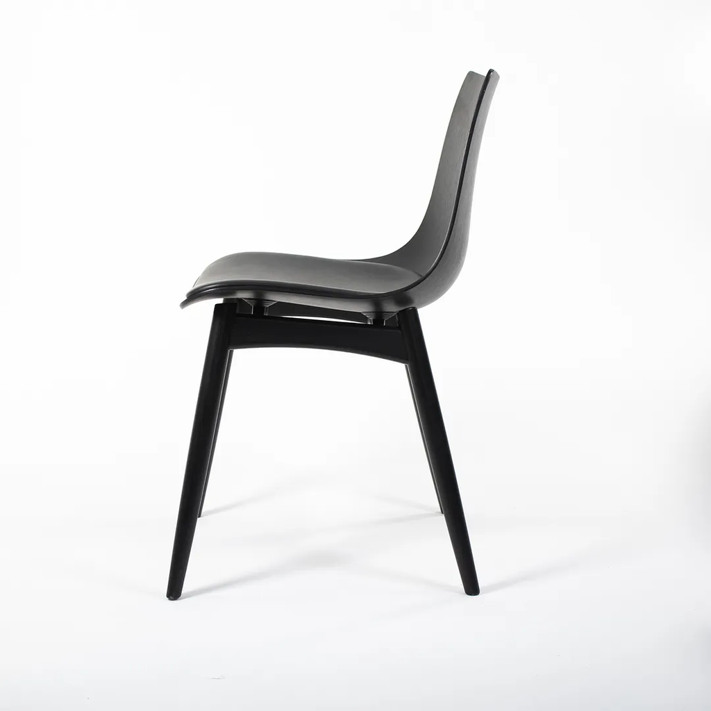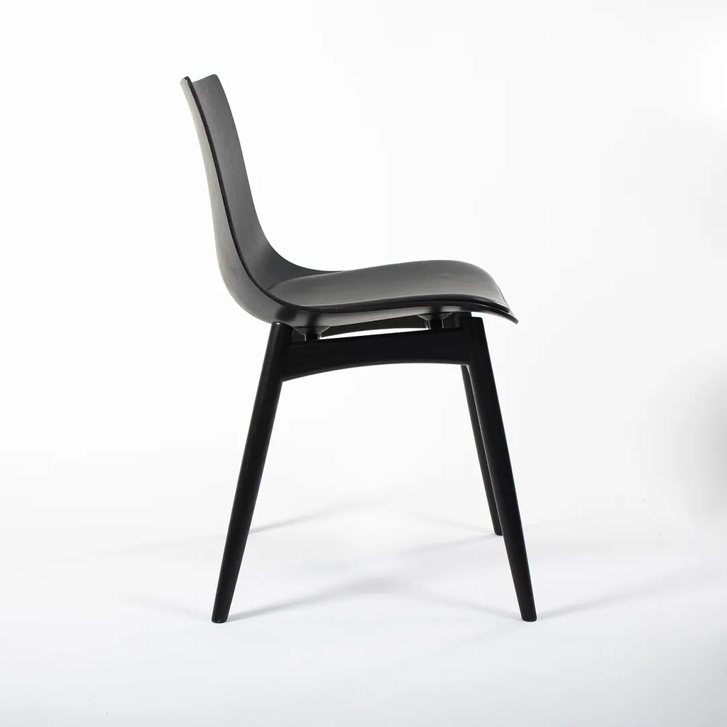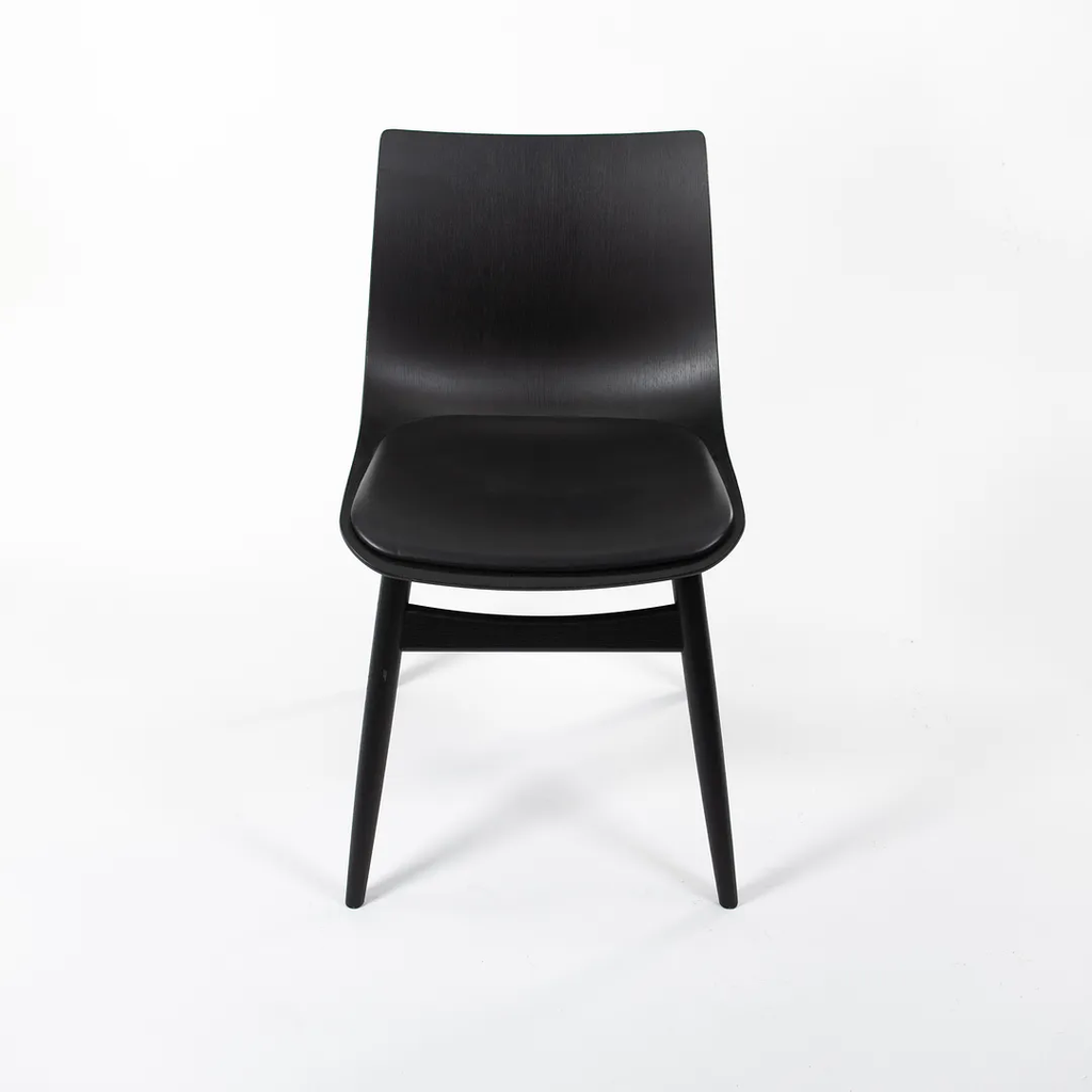 This is a BA001S Preludia Wood Chair, designed by Brad Ascalon and produced by Carl Hansen & Son in Denmark. The chair is made with a black oak/beech frame and black leather seat. The chair dates circa 2021 and is guaranteed as authentic. Condition is excellent with only minimal wear. See photos. This came directly from Carl Hansen and was likely never used in a home or office setting.