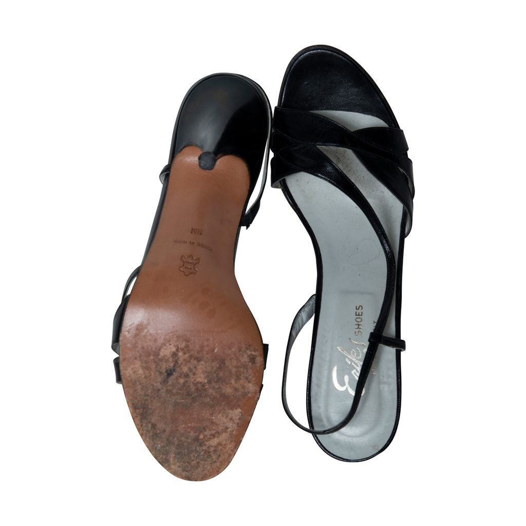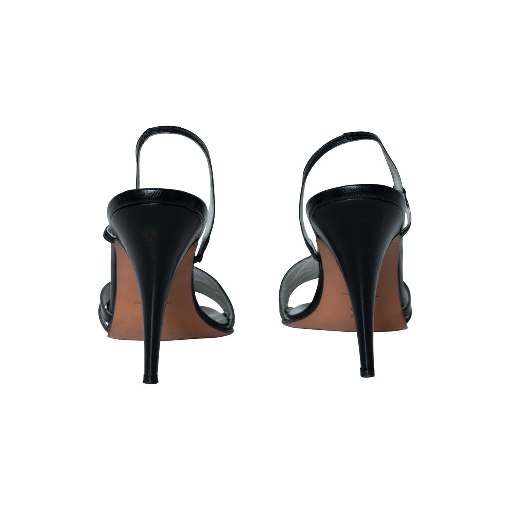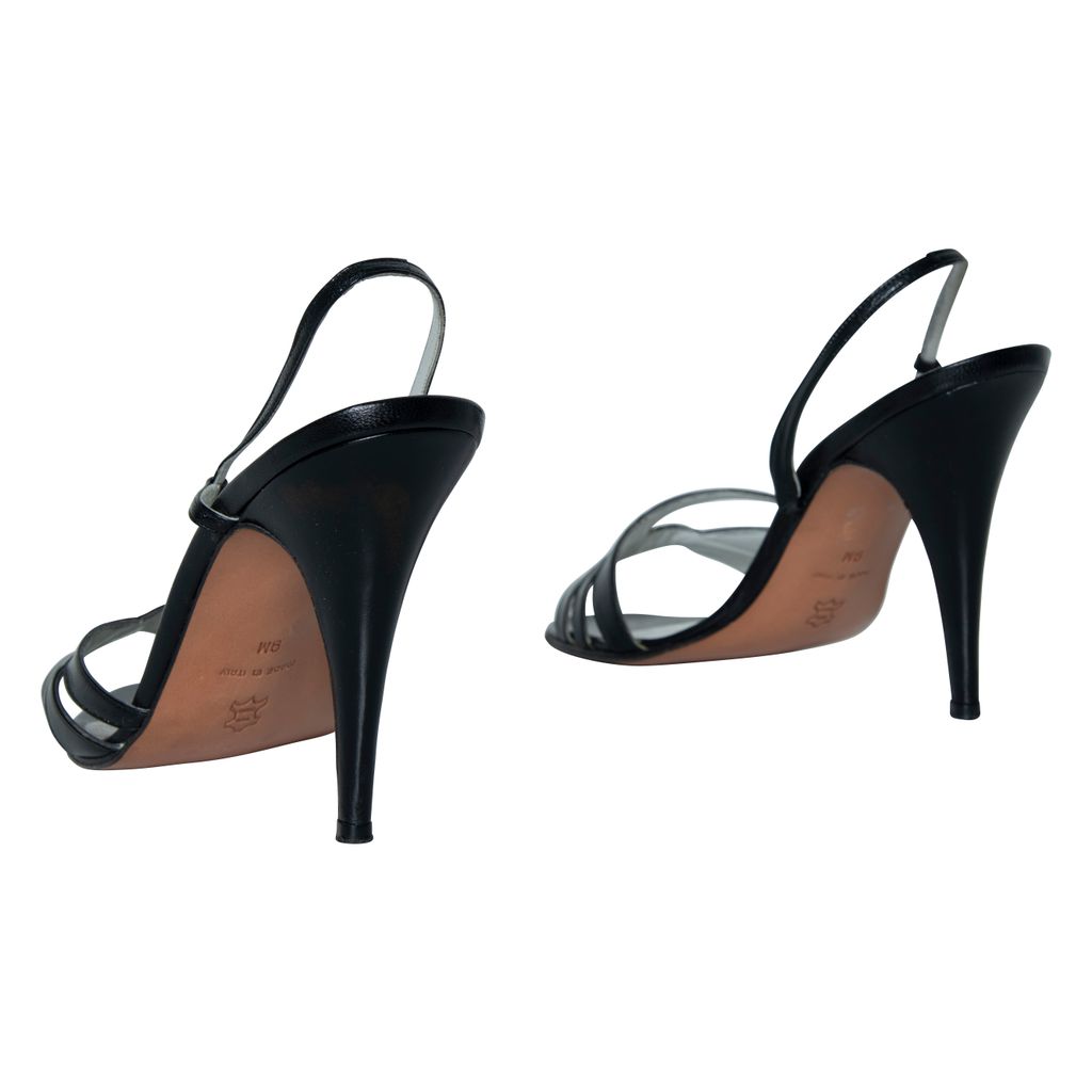 Black Strappy Heels features slingback, stiletto heel, and rounded toe.