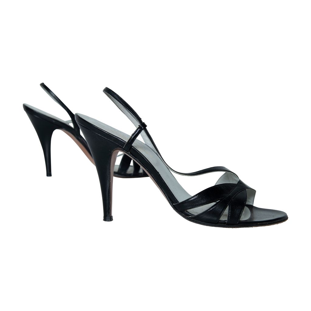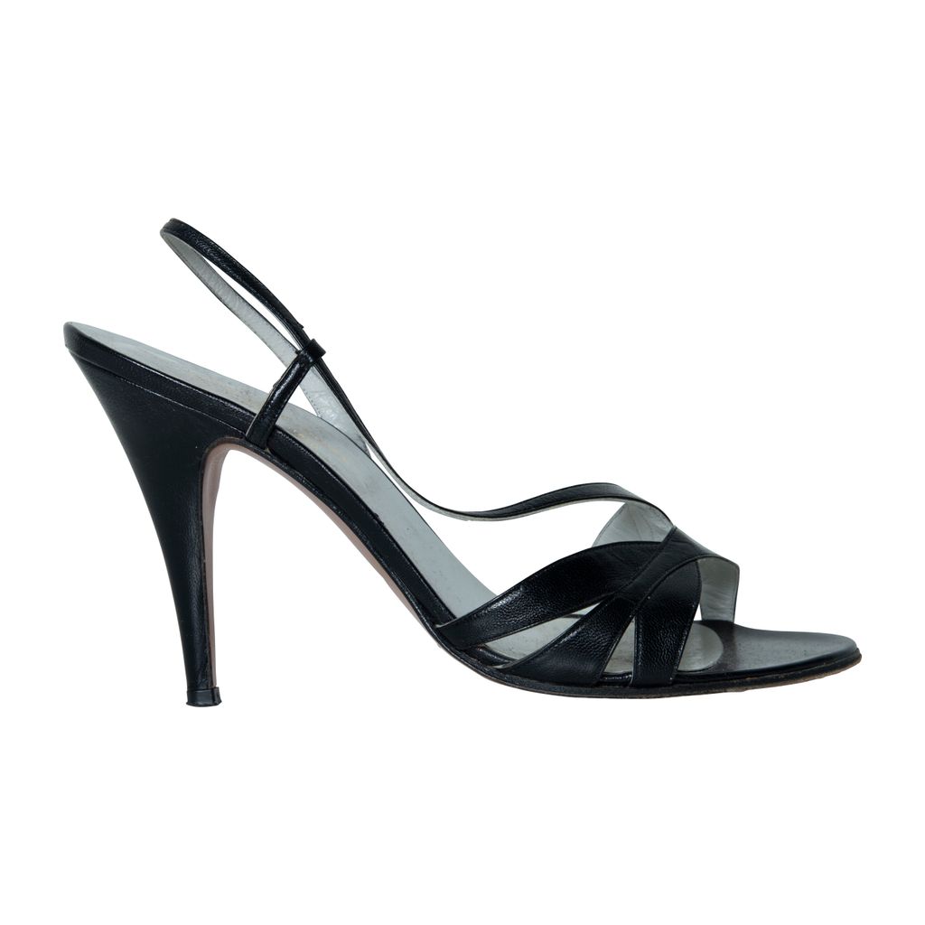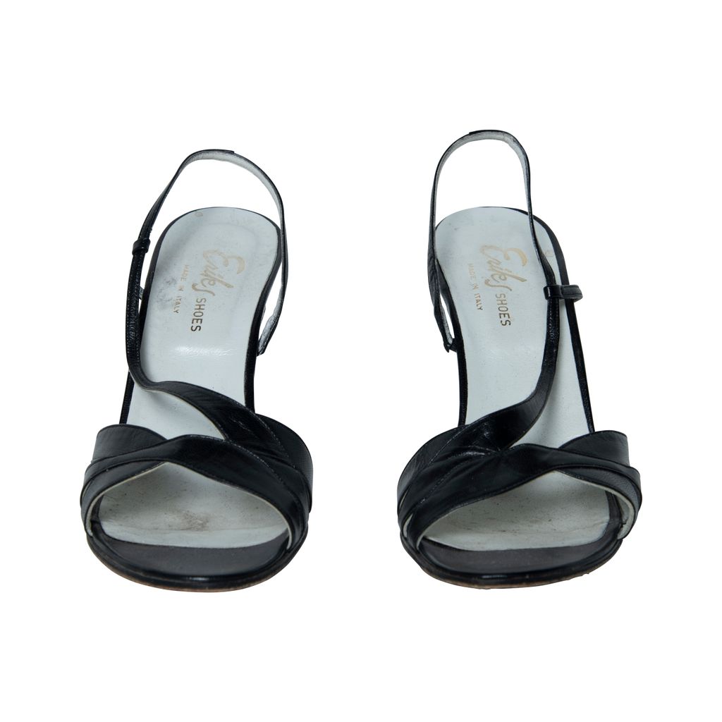 Black Strappy Heels features slingback, stiletto heel, and rounded toe.