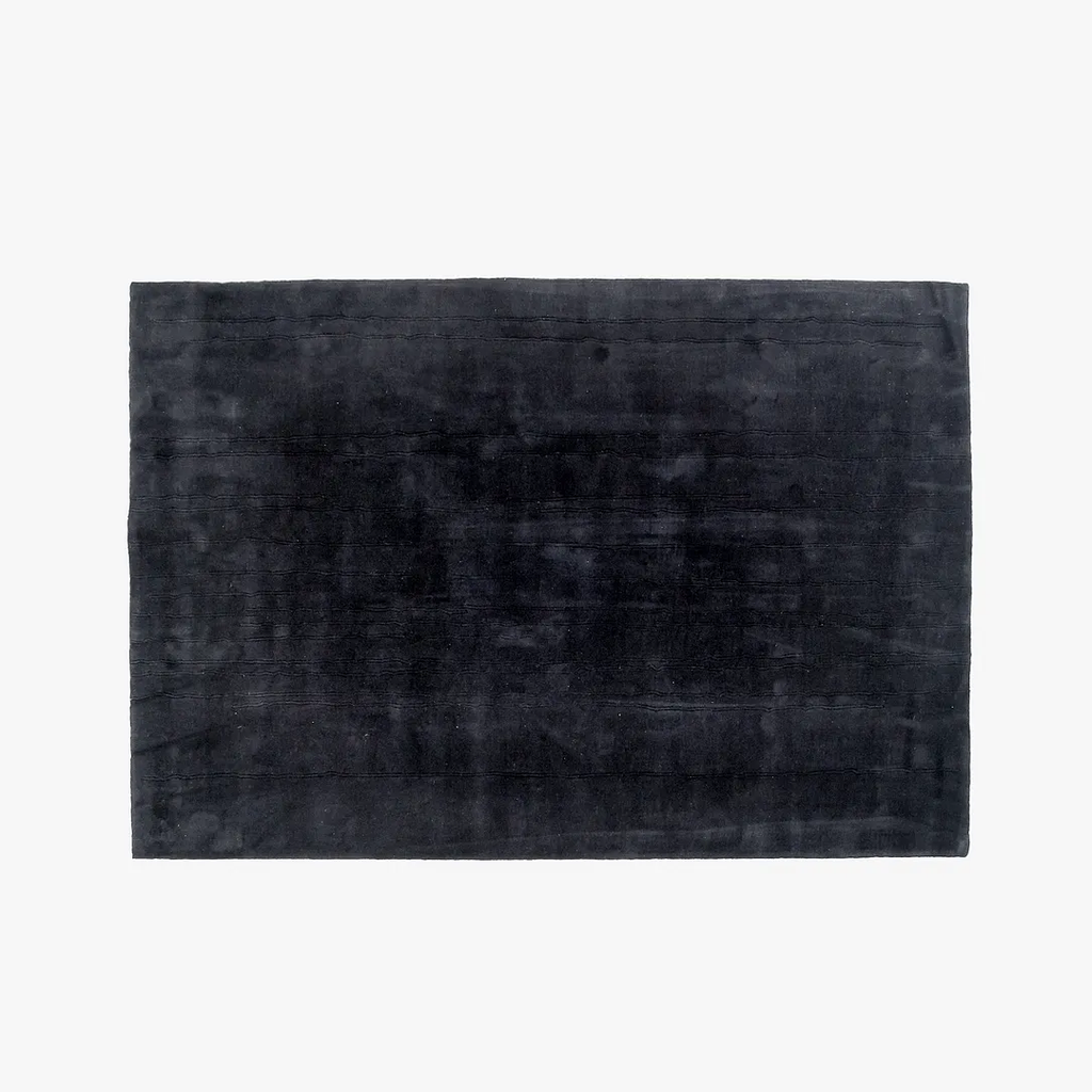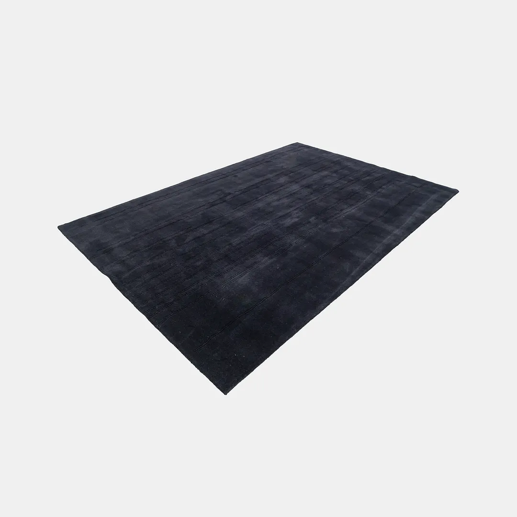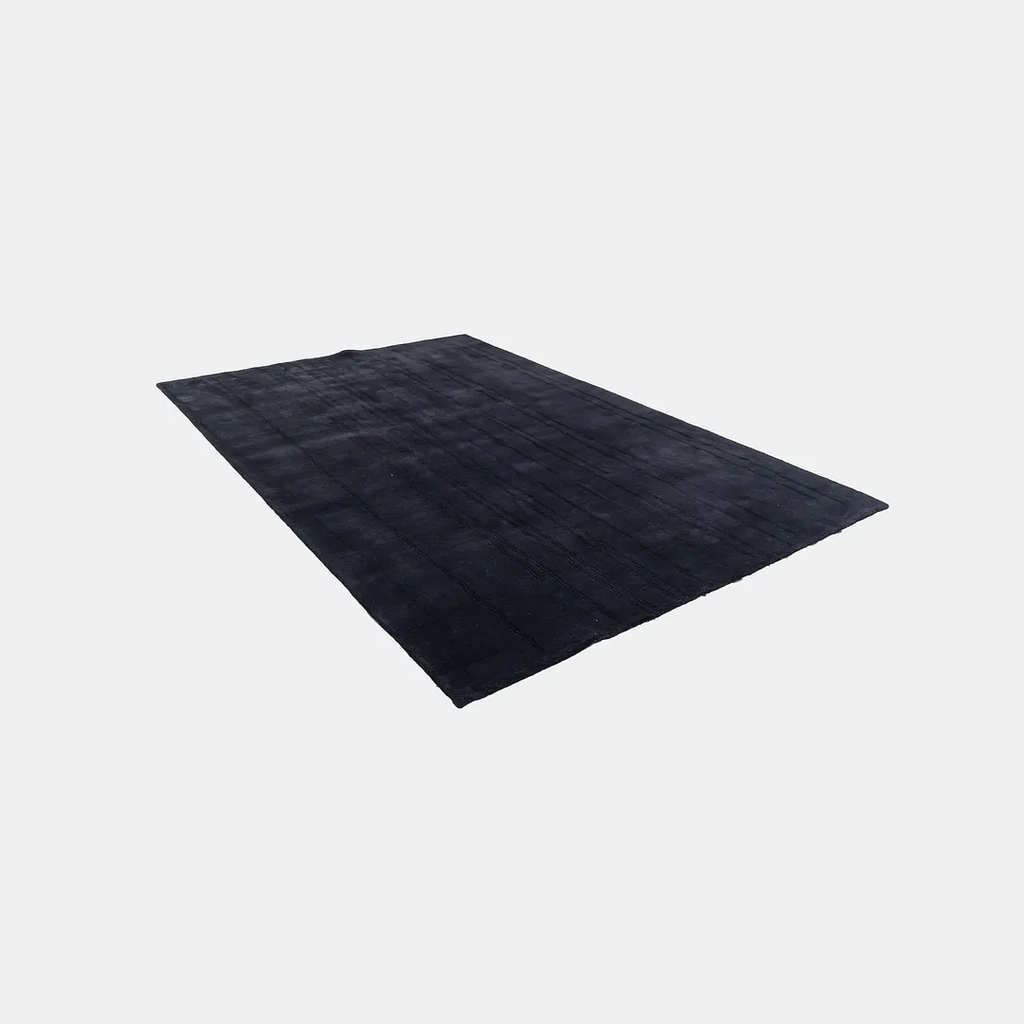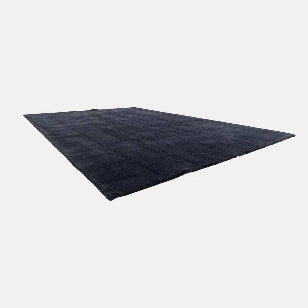This is a Woodlines area rug, designed by Naja Utzom Popov and produced by Carl Hansen in Denmark. The piece is made of hand-knotted woolen yarn in black, and the design has grey lines. The rug dates to circa 2021 and is guaranteed as authentic. The condition is very good with light wear from use, please see photos. This came directly from Carl Hansen and was seemingly used as a showroom display model or floor model.