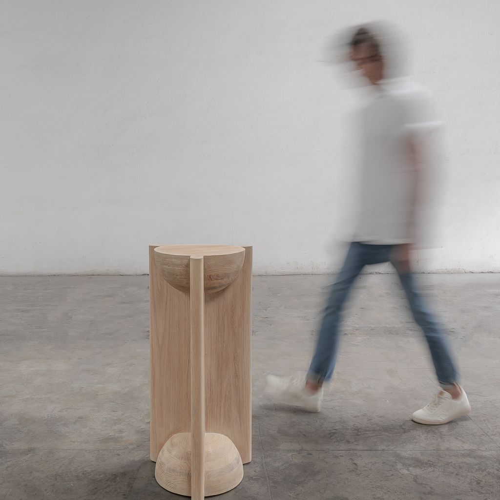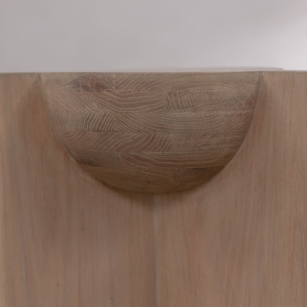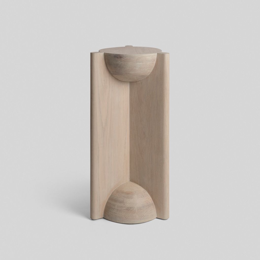 The BLEO Pedestal by Daniel Couttolenc unites geometric clarity with sculptural depth. Made from solid Oak Wood in a subtle Cream Wash Tint, its vertical prism structure integrates concave and convex forms in balanced tension. Rooted in the golden ratio, it symbolizes the meeting of physical form and inner stillness—an elegant companion in any setting. Custom finishes available upon request.