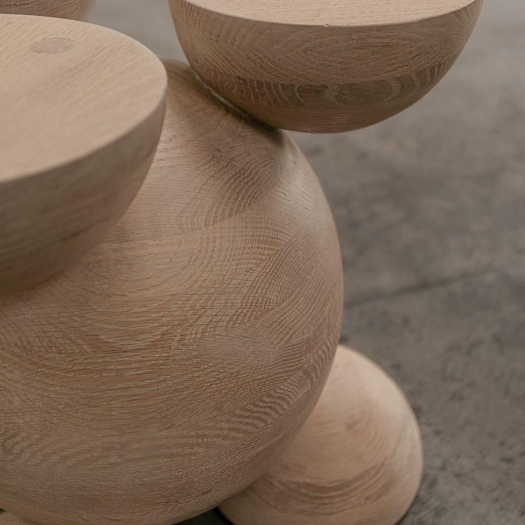 The BLEO Stool III by Daniel Couttolenc embodies motion through layered geometry. Composed of stacked spheres and hemispheres crafted in Oak Wood with a Cream Wash Tint, its composition reflects sacred principles of balance and transformation. More than an object, it is a contemplative sculpture designed to enrich both space and spirit. Custom designs available upon request.
