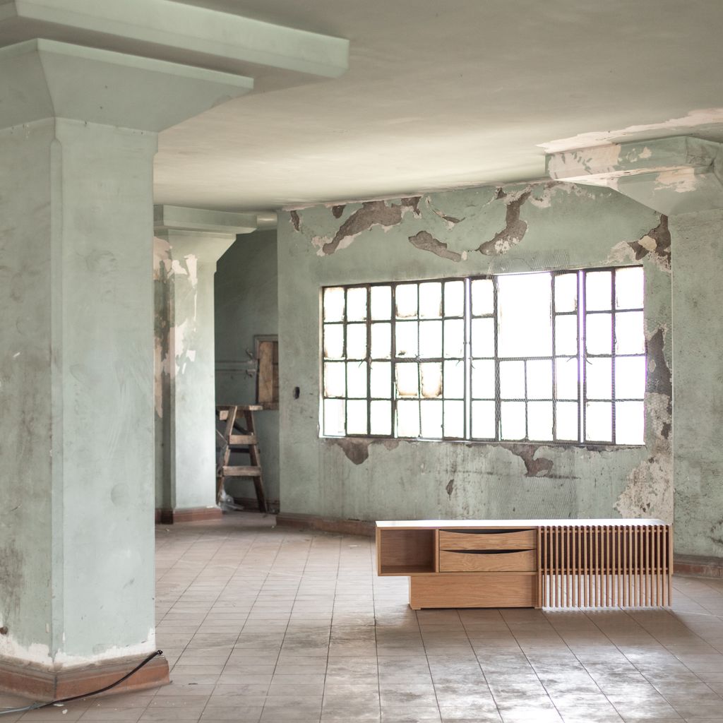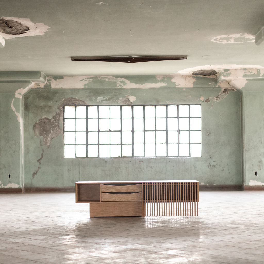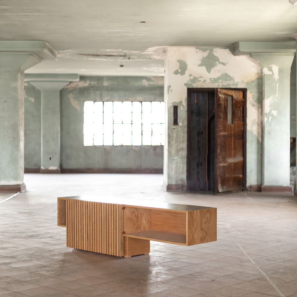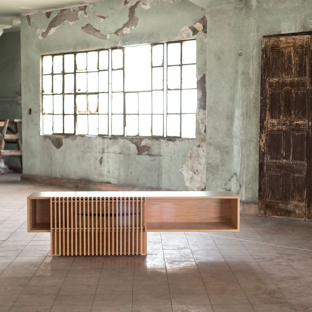 Inspired in the inevitable balance that architecture creates, where its visual composition is generated through 2 simple volumes. By interacting with the sliding door and its different perspectives, there is nothing left but a constant debate between the transparency and the opacity of the piece itself.