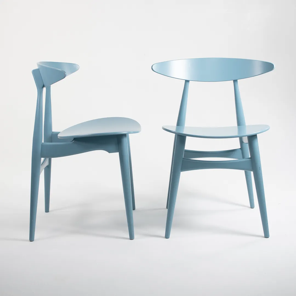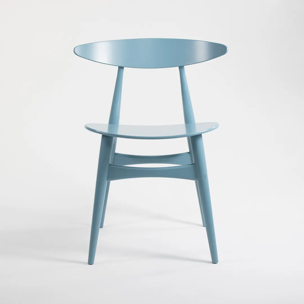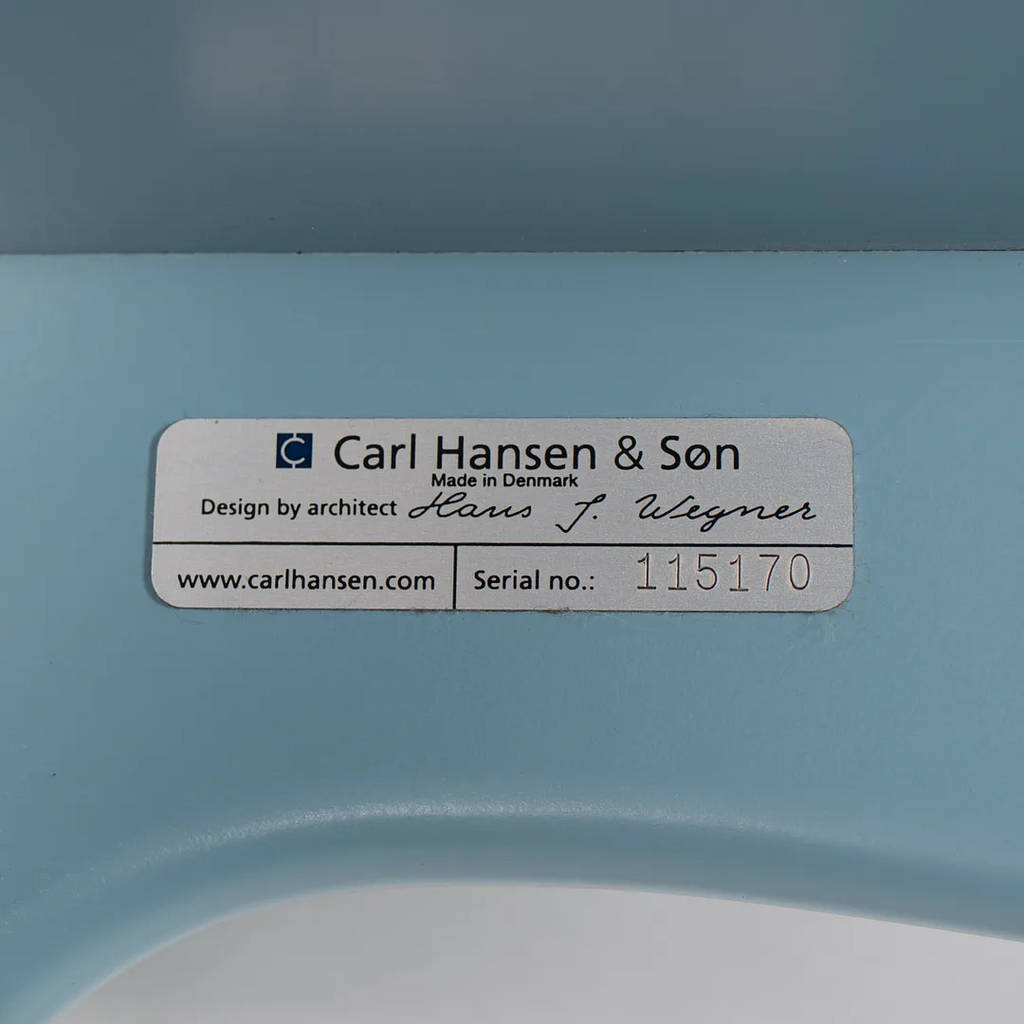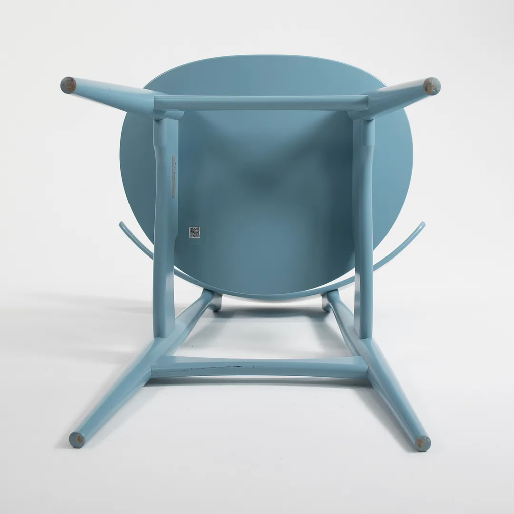 Listed for sale are two (sold separately) CH33T Chairs designed by Hans Wegner and produced by Carl Hansen & Son in Denmark. The chair is made with a solid beech frame and painted steel blue (we believe this to be the correct color, though it is not guaranteed). These chairs date to circa 2020 and are guaranteed as authentic. Condition is very good to excellent with minor wear, including some light marks on the back as noted in the photos. These were briefly used as floor models in a Carl Hansen showroom and came directly to us from there. See photos. If desired, we can do our best to touch-up the couple of spots on the back prior to shipping and can also quite easily remove the couple of black marks on the underside before shipping also.