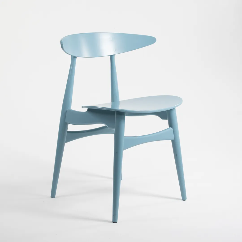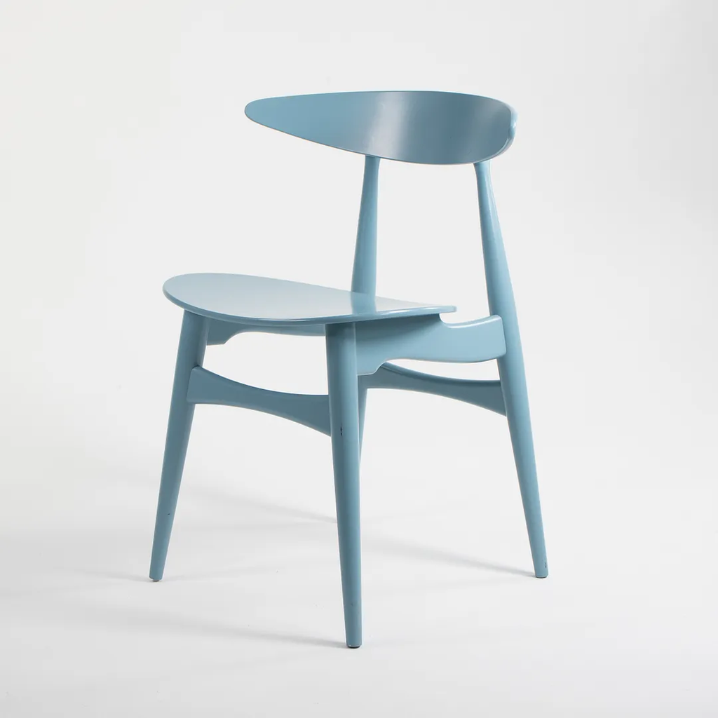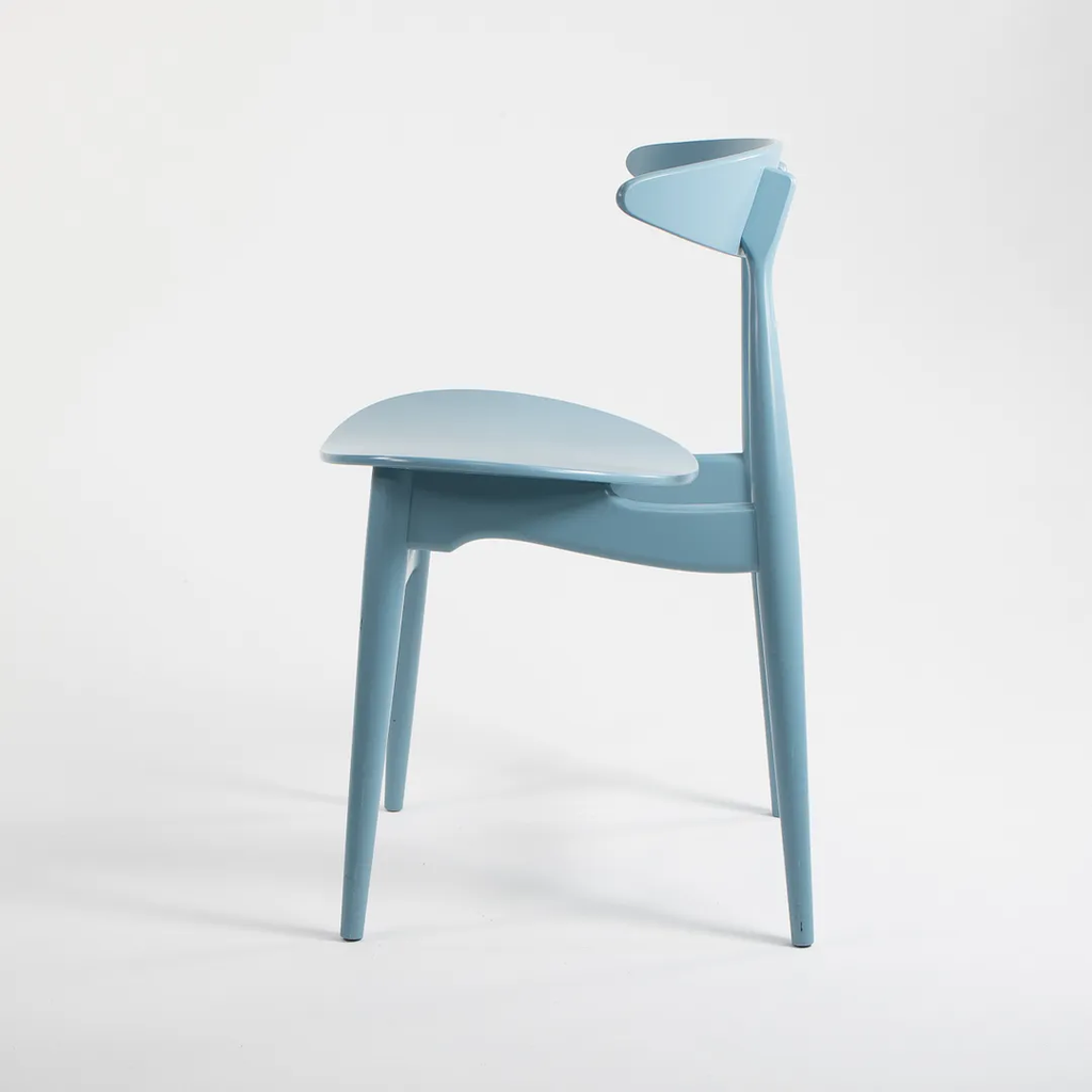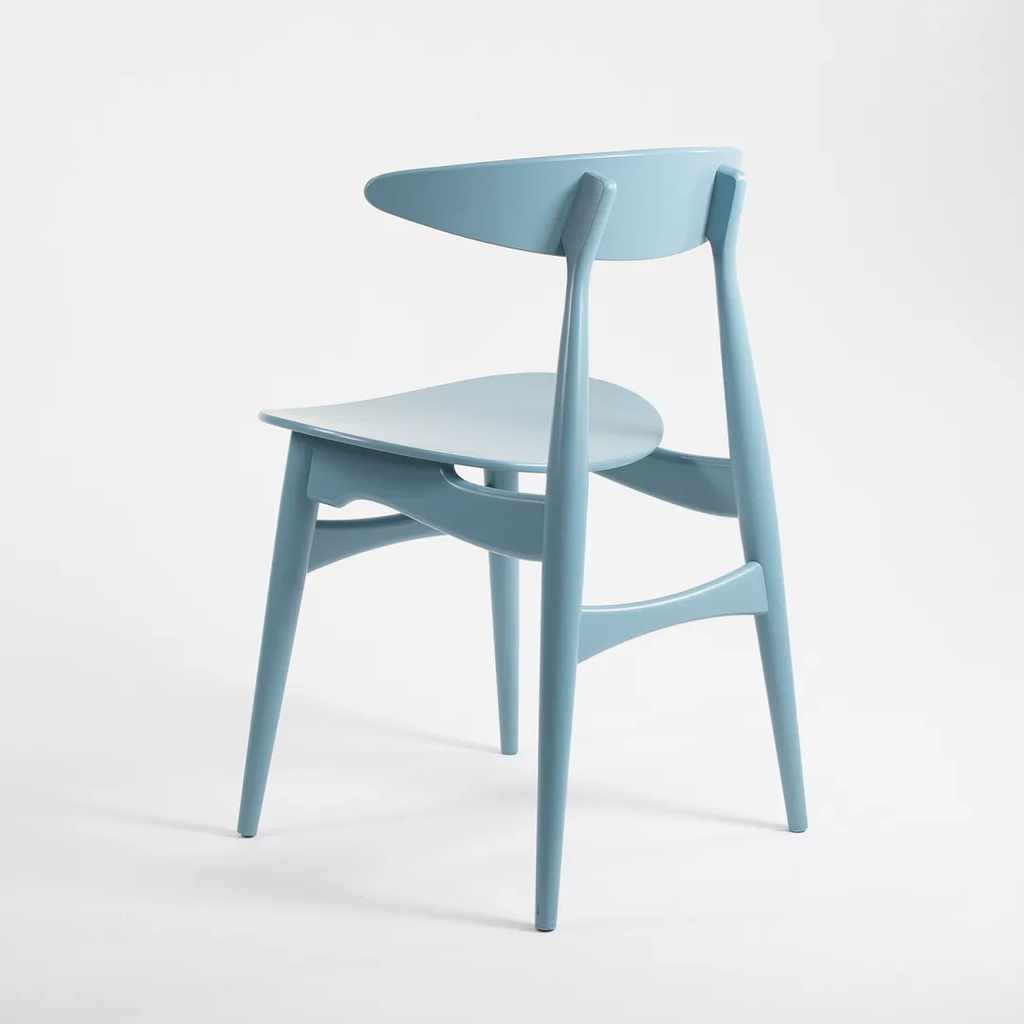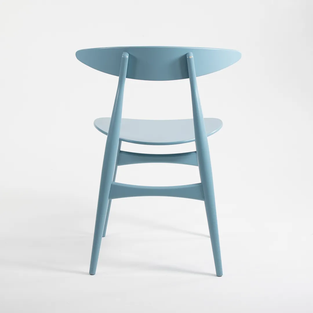 Listed for sale are two (sold separately) CH33T Chairs designed by Hans Wegner and produced by Carl Hansen & Son in Denmark. The chair is made with a solid beech frame and painted steel blue (we believe this to be the correct color, though it is not guaranteed). These chairs date to circa 2020 and are guaranteed as authentic. Condition is very good to excellent with minor wear, including some light marks on the back as noted in the photos. These were briefly used as floor models in a Carl Hansen showroom and came directly to us from there. See photos. If desired, we can do our best to touch-up the couple of spots on the back prior to shipping and can also quite easily remove the couple of black marks on the underside before shipping also.