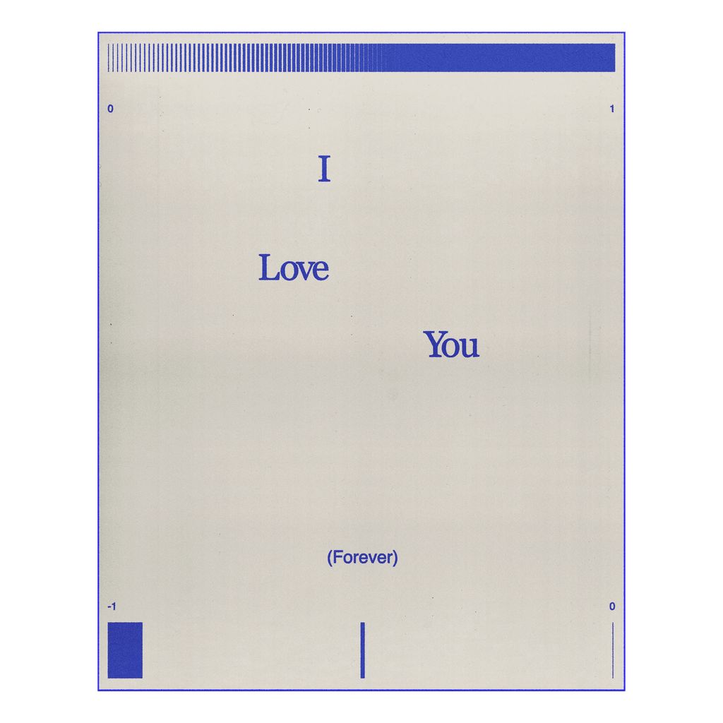 Features "I Love you Forever" text with geometric design along the sides and corners