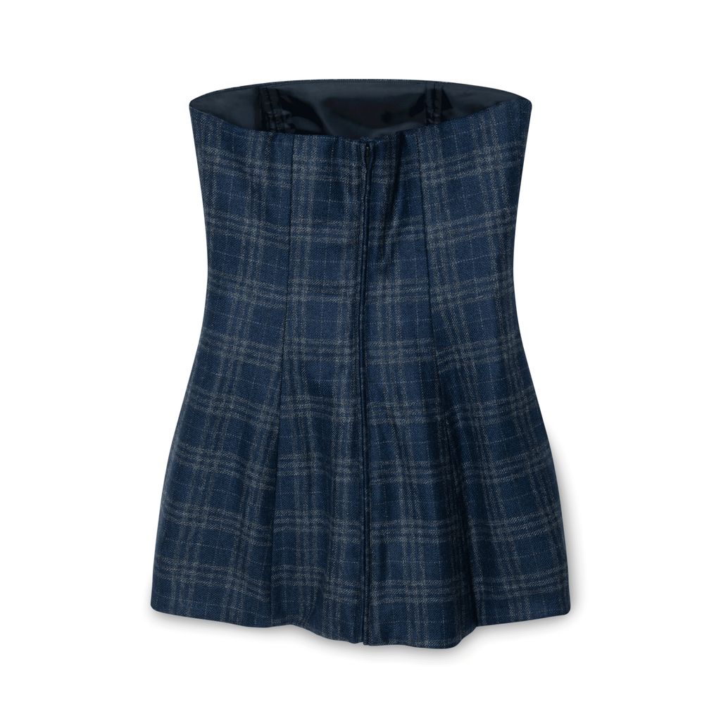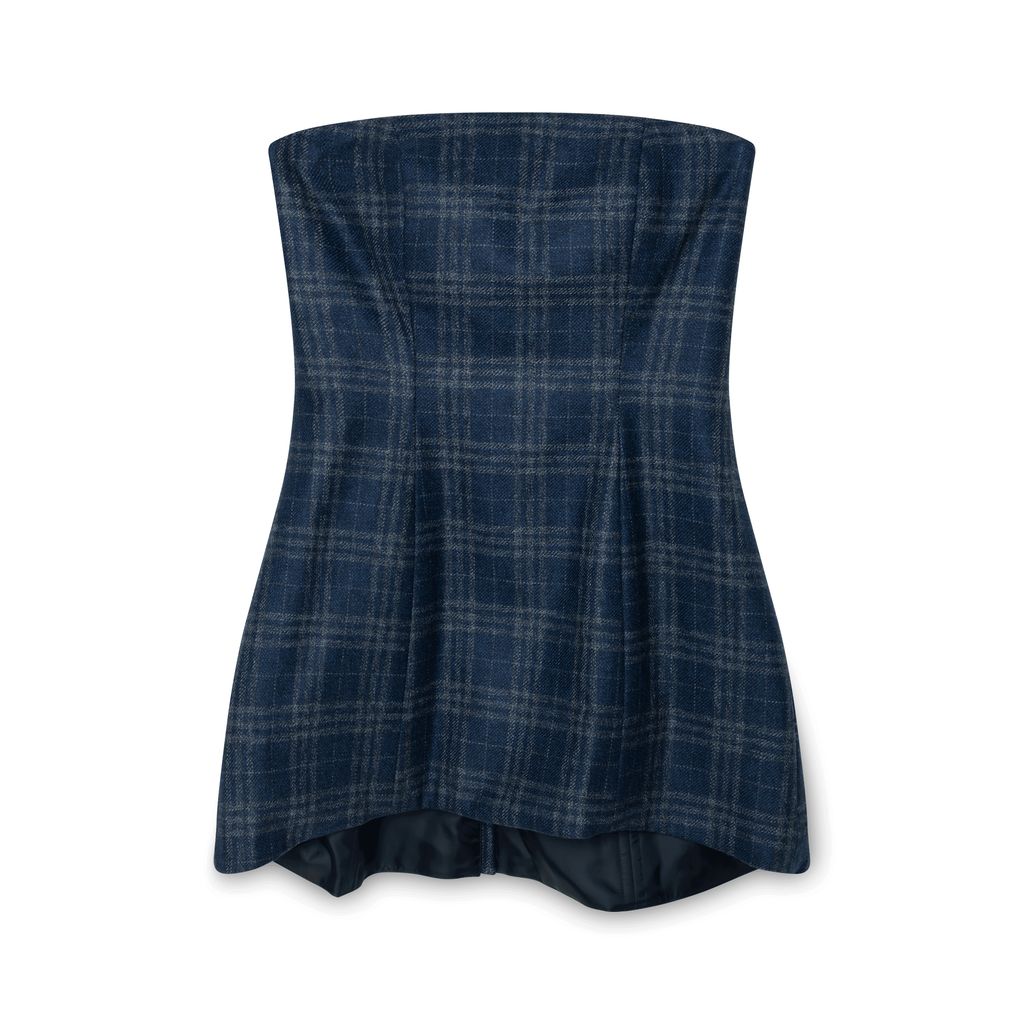 The dress of your dreams – this little number is flattering on everbody. It's a strapless corsetted minidress that's fully boned to create the most dramatic shape. It cinches the waist and flares out at the hip. It's slightly longer in the back and has a zipper all the way down the center back.