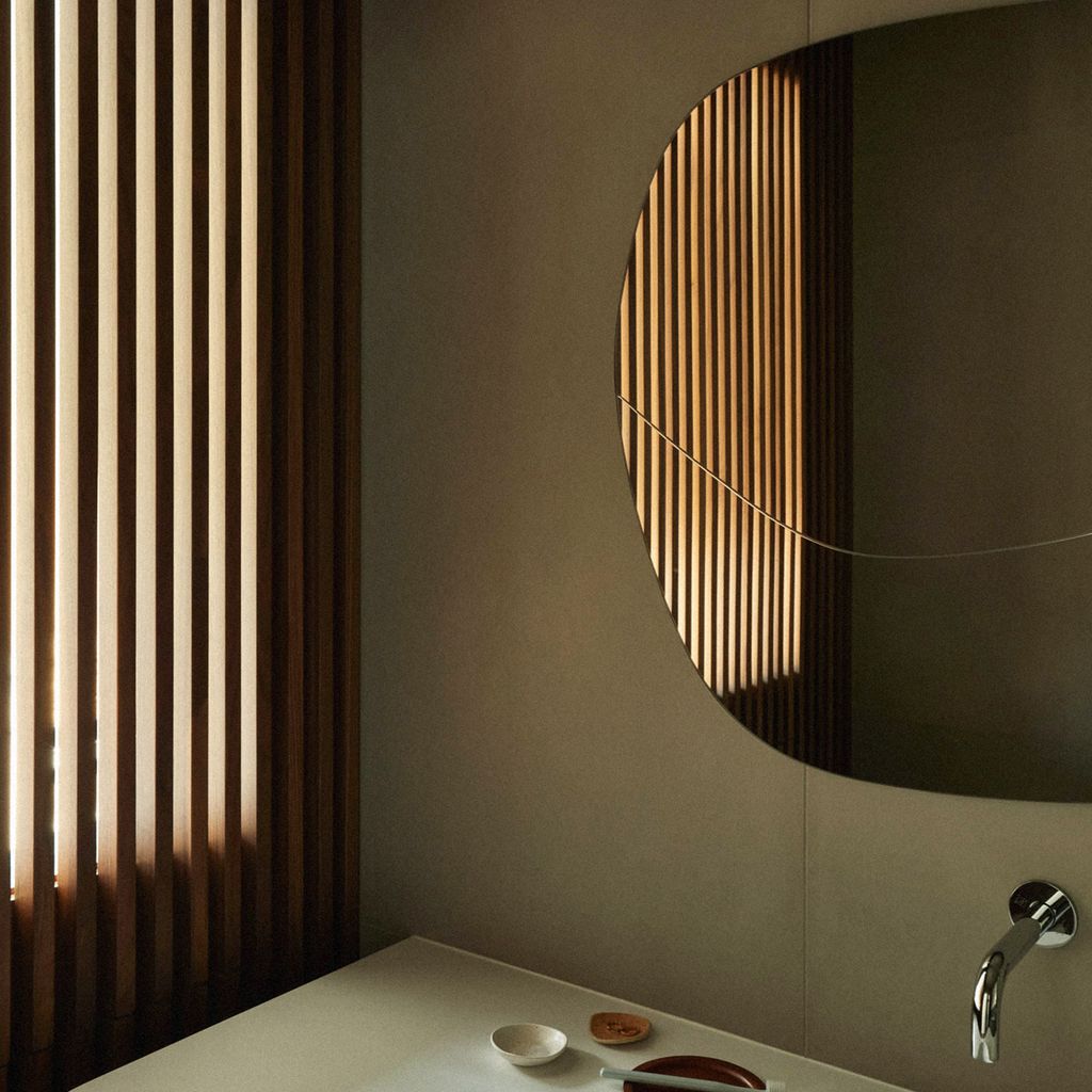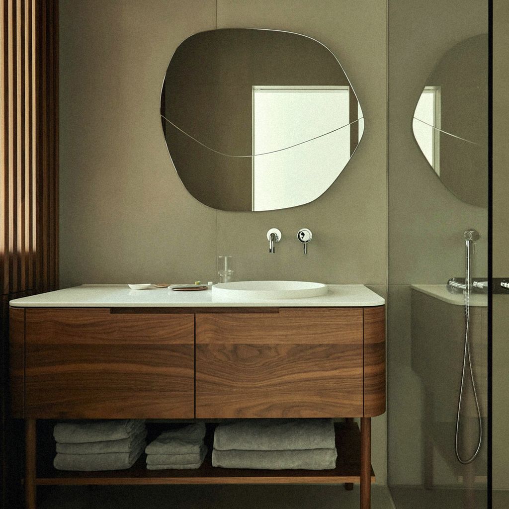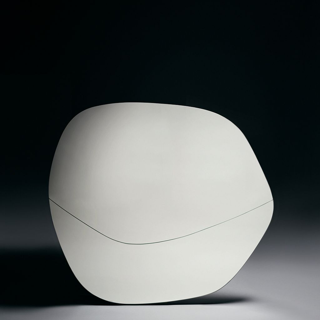Clear mirror and black lacquered wood