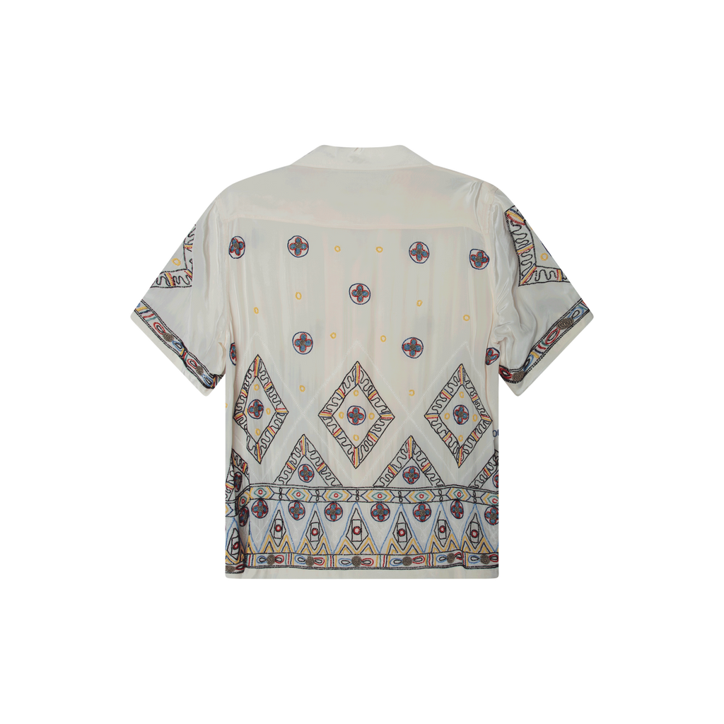 Bode Embellished Short Sleeve Button Up features camp collar, front button closure, and embellished beaded design all over.