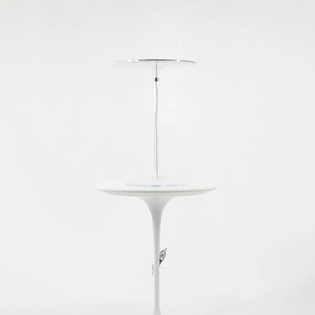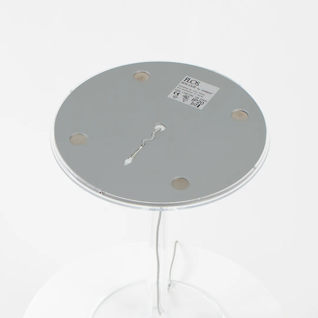 Listed for sale is a Bon Jour LED Table Lamp made with a PMMA plastic base and chrome finishes. The lamp was designed by Philippe Starck and produced by Flos in Italy. It dates to circa 2021 and is guaranteed as authentic. Condition is excellent with minimal wear from use. See photos.