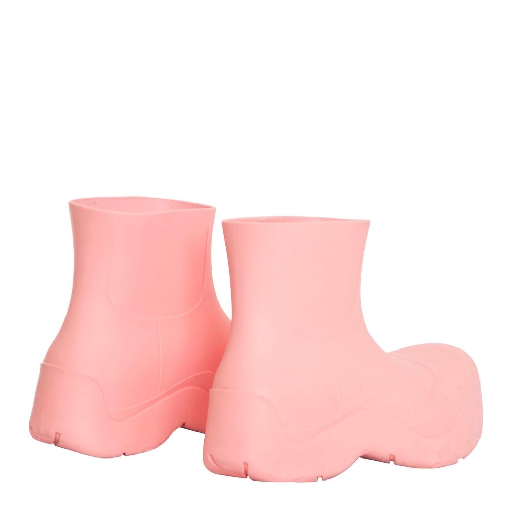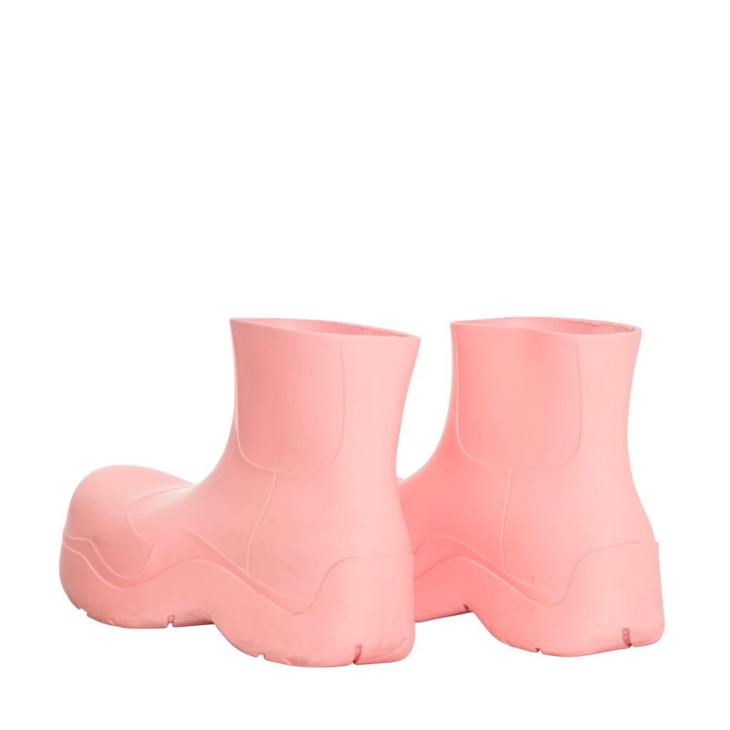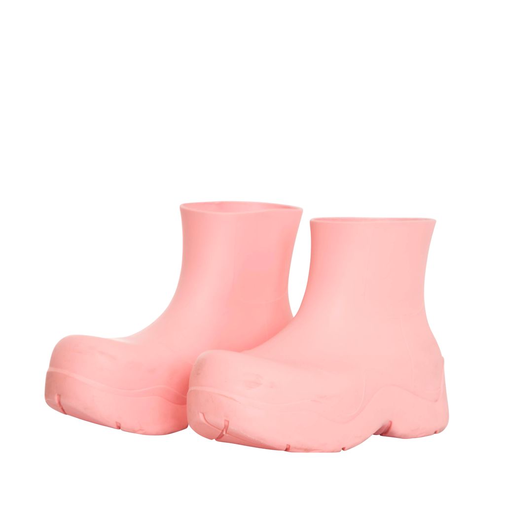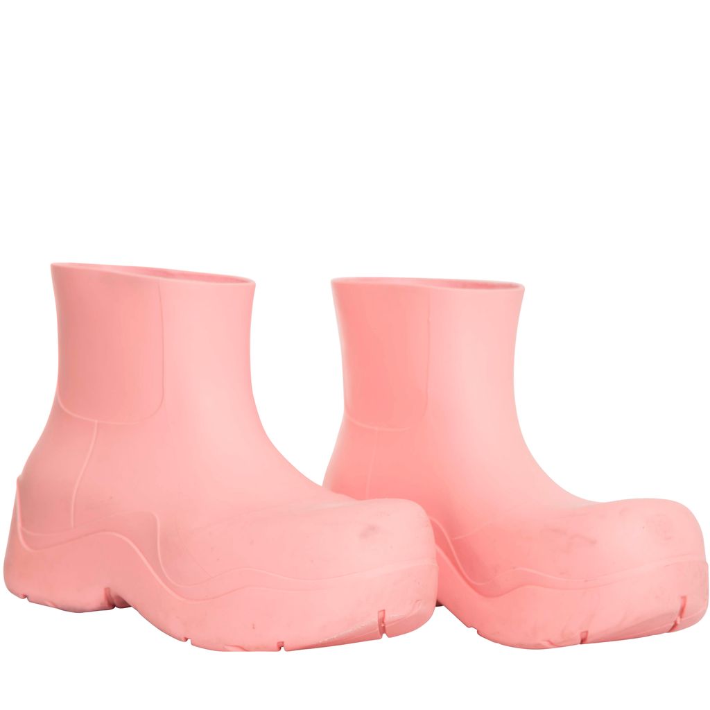 Bottega Veneta Puddle Boots features waterproof rubber, bonded jersey lining, textured rubber midsole, treaded rubber outsole.