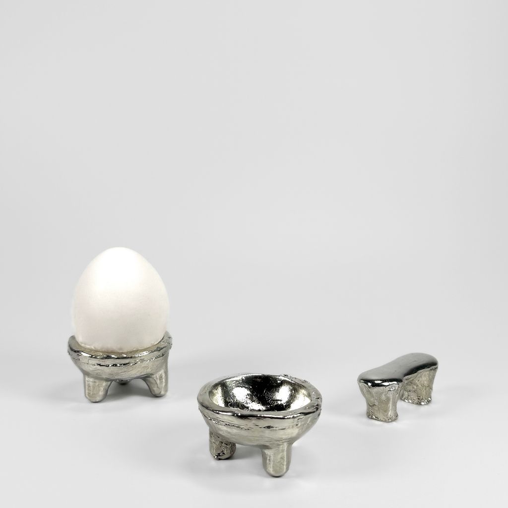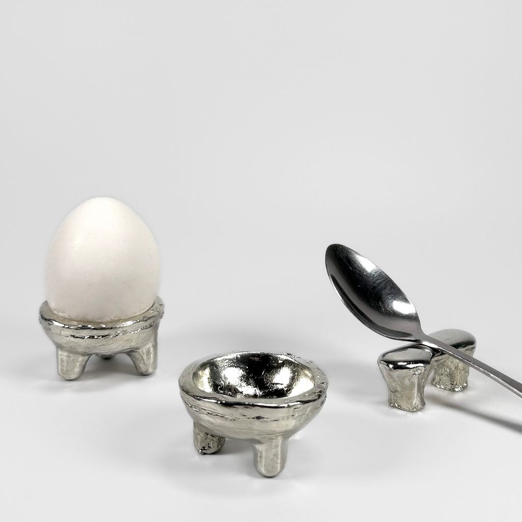 This set includes one small cutlery stand to elegantly hold your spoon, and two small bowls which can be used for your eggs and a sprinkle of salt.