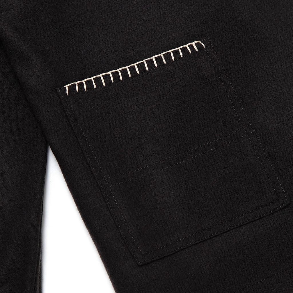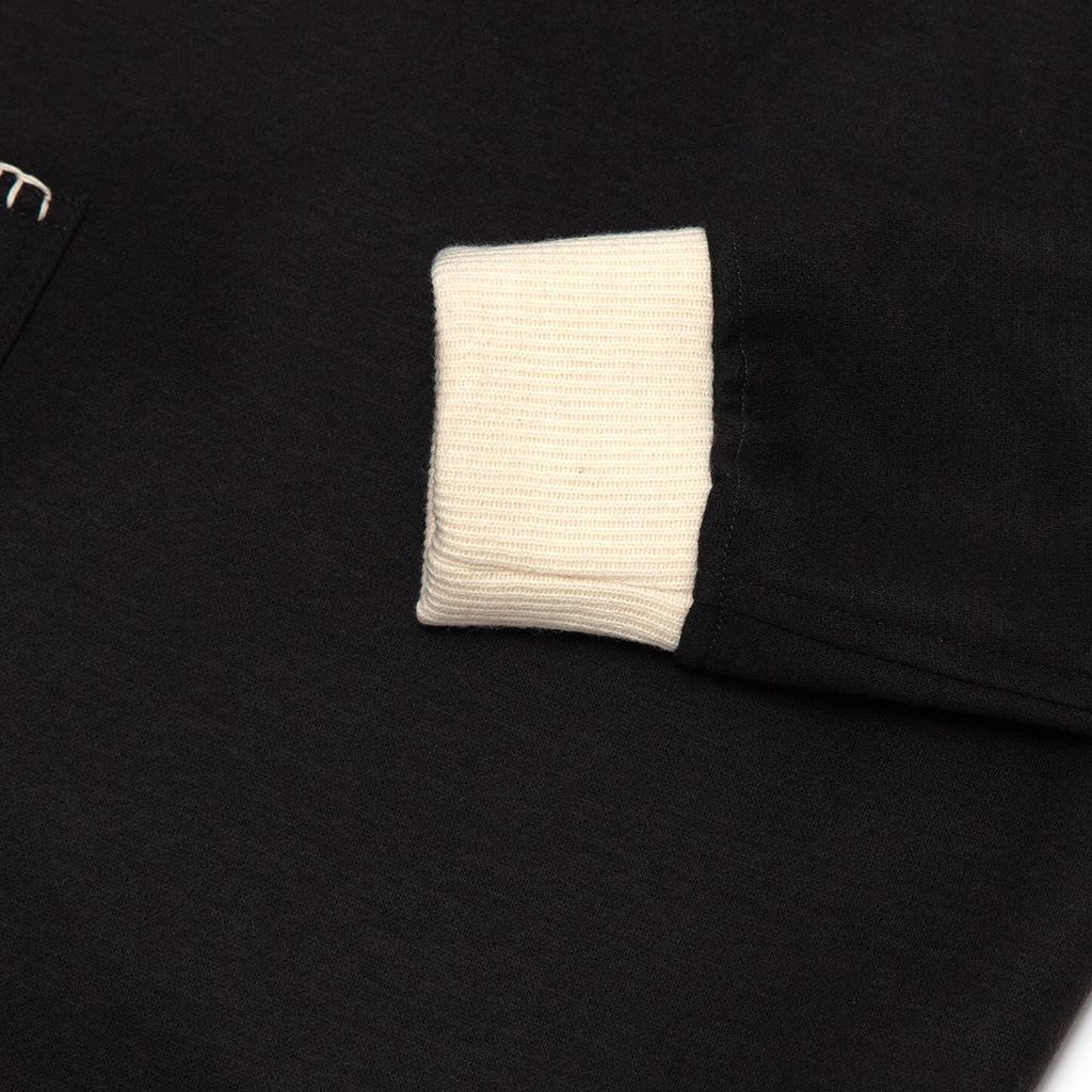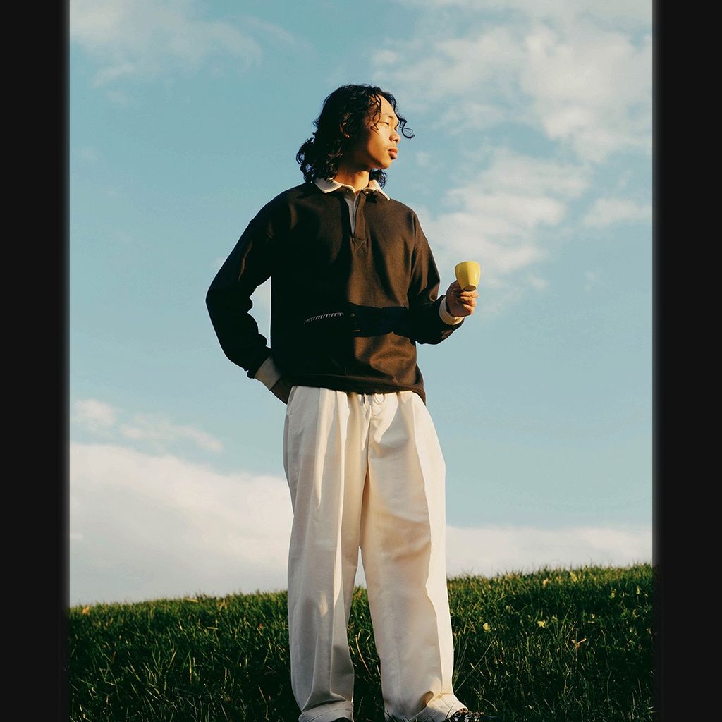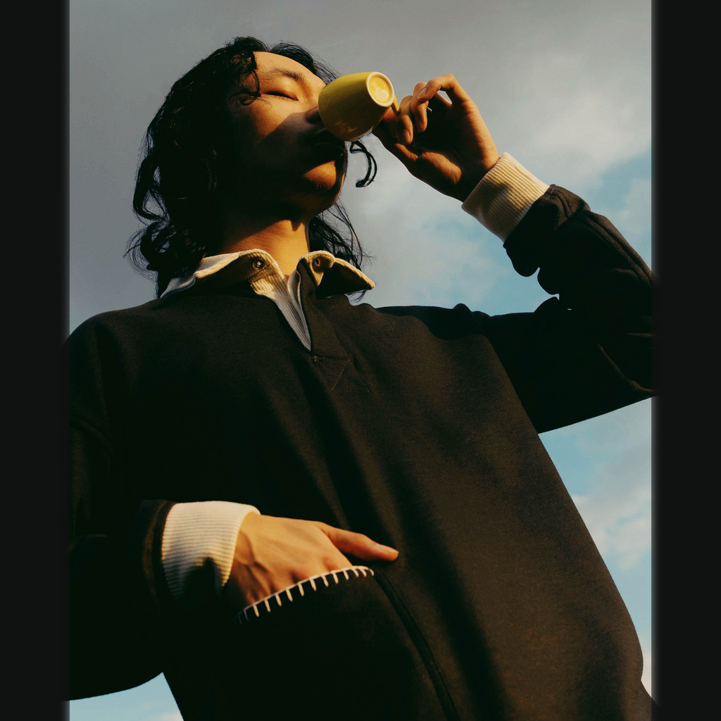 Our most luxurious piece to date, this rugby features Japanese wool knit fabric, ribbed collar, smoke pearl buttons and hand embroidered edge stitching. Material: 82/18 Wool/Poly Blend Color: Shadow Gray/Ecru Fabric made in Japan Manufactured in USA Model is 5’9” and wears a Medium