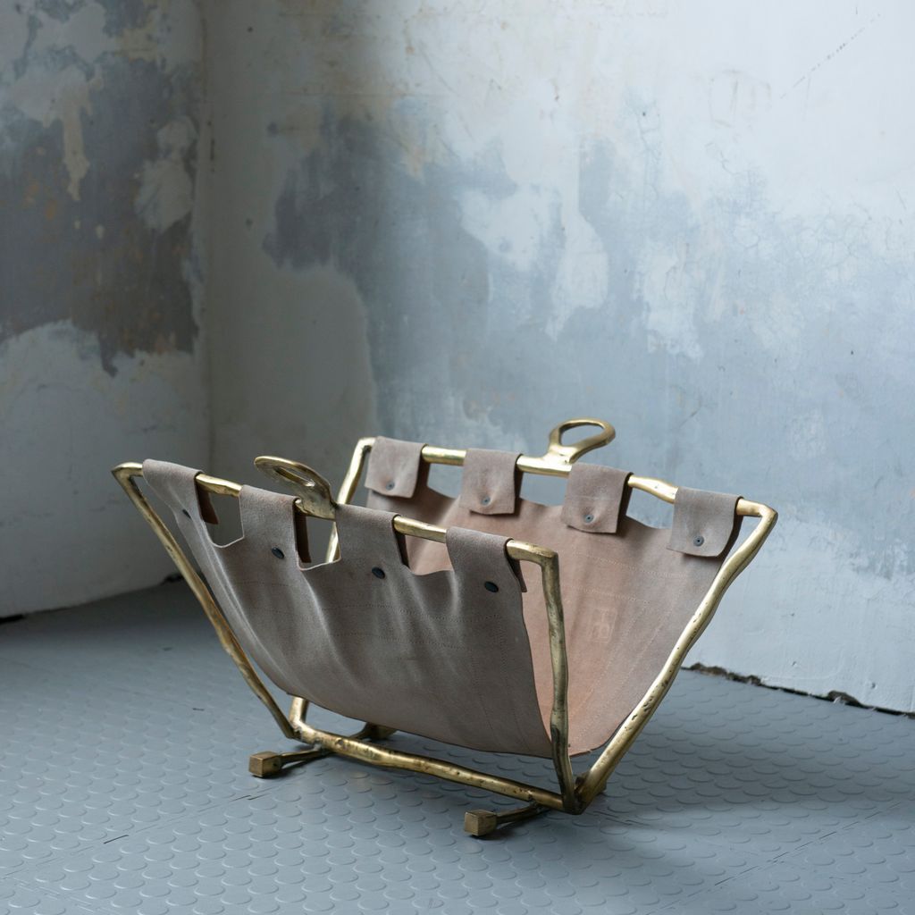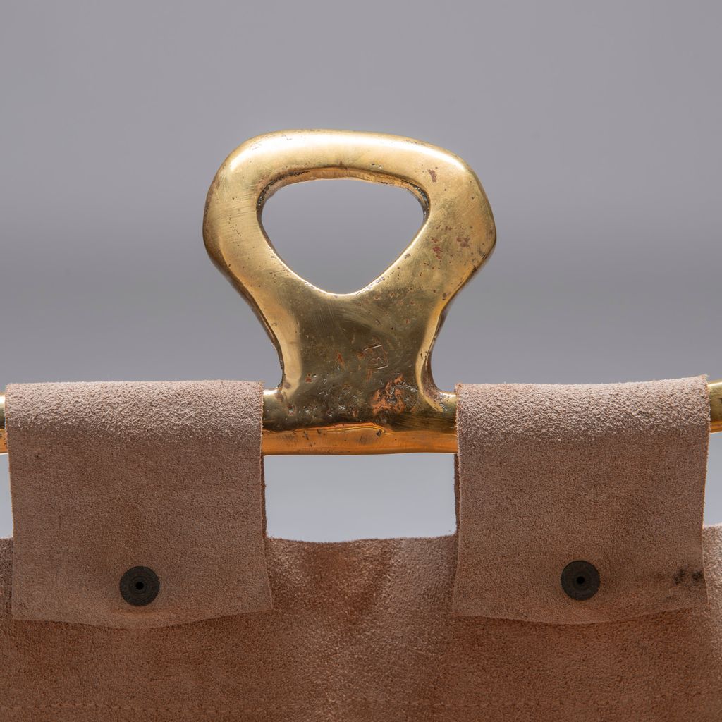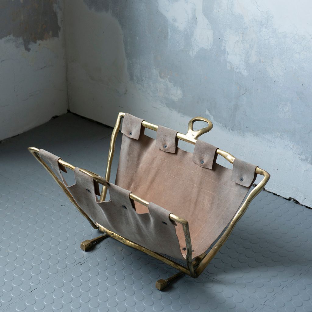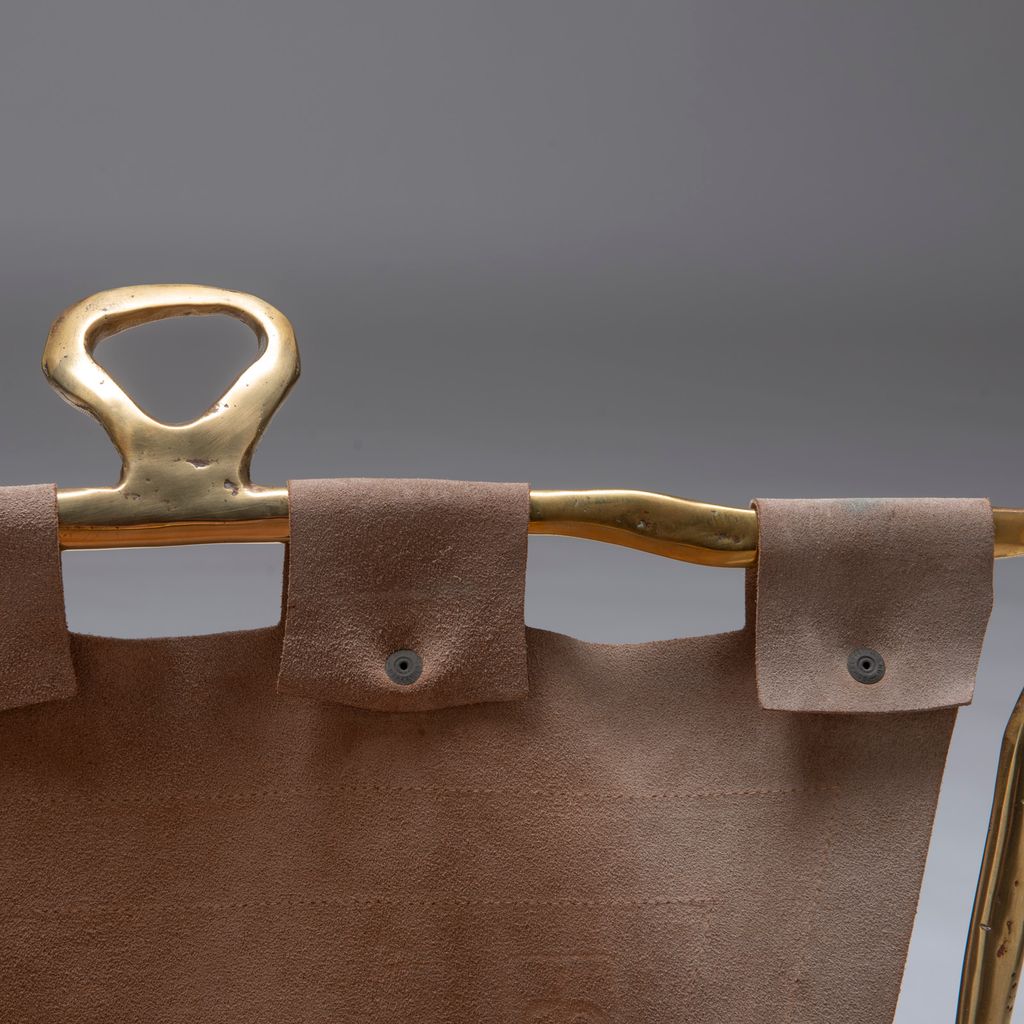 80s David Marshall bronze and leather magazine rack in great condition. Small stain from ink pen, beautiful patina.