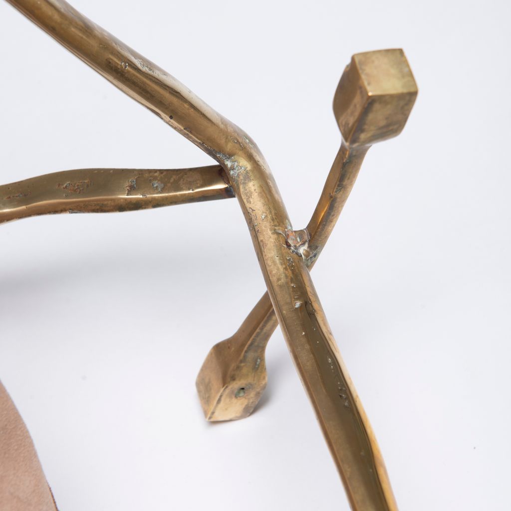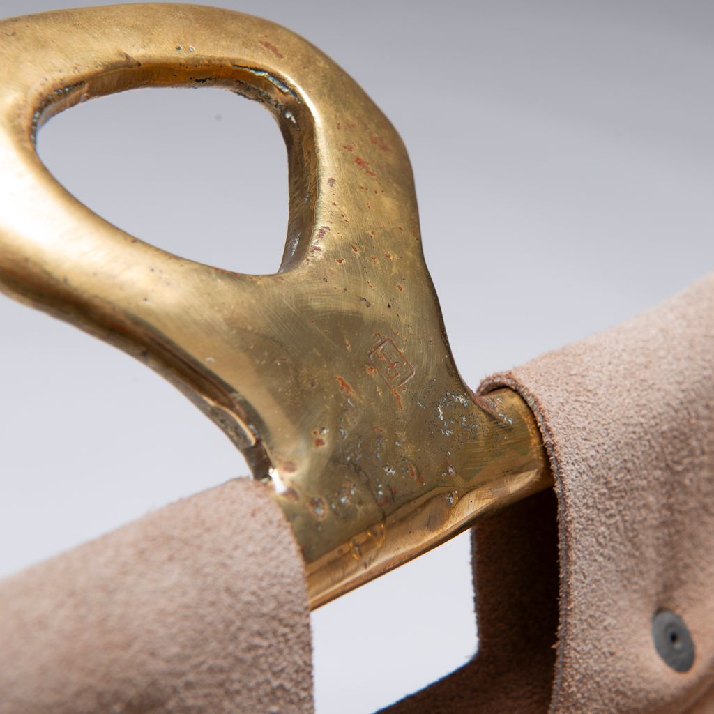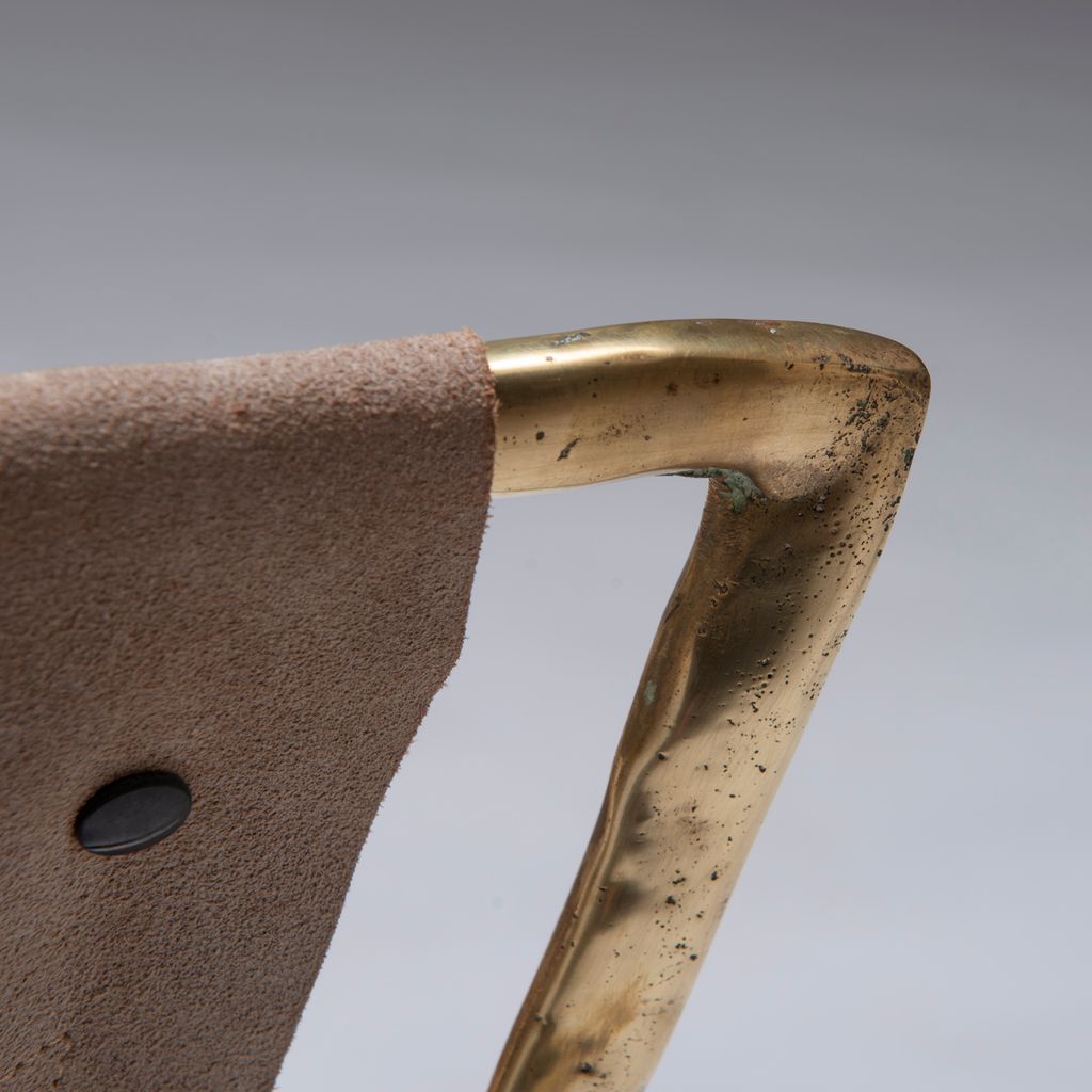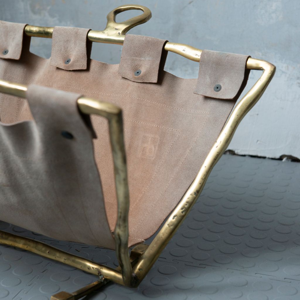 80s David Marshall bronze and leather magazine rack in great condition. Small stain from ink pen, beautiful patina.