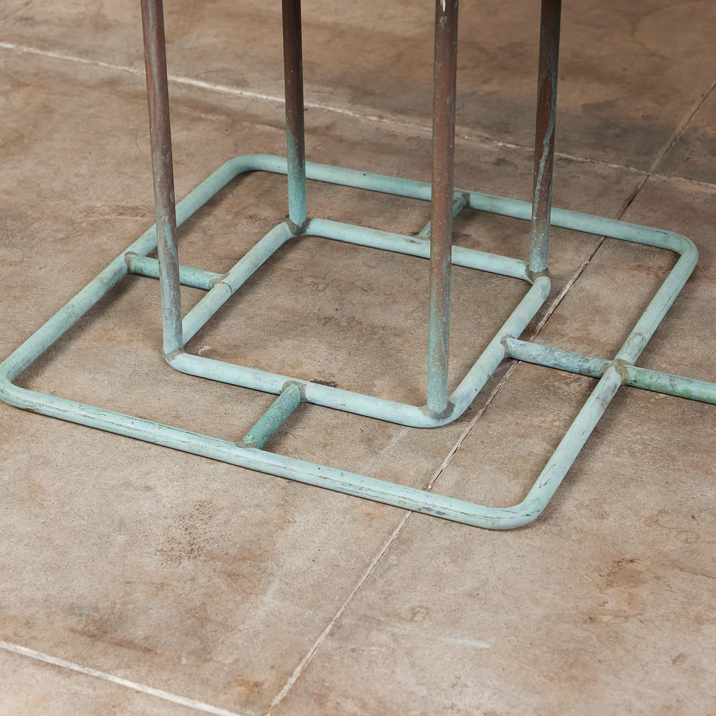 Good vintage condition; professionally cleaned. Outdoor use has caused the wooden slats to darken. The bronze carries a beautiful verdigris patina.