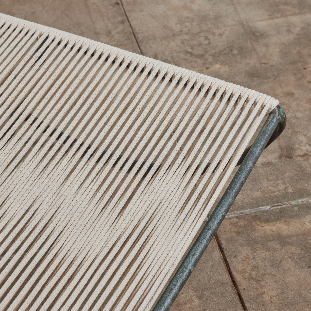 All Walter Lamb patio furniture at DEN has been restored with the utmost attention to the designer’s original specifications. We rope all seating with a polished cotton sail cord that closely approximates what would have been offered by Brown Jordan when the line was originally retailed. While the cord will retain its shape and strength in most US climate zones, please expect to see some changes in color and texture over time due to weathering and natural accumulation of particulate matter. To maintain showroom condition, we advise covering your furniture when not in use, and especially during extreme conditions.