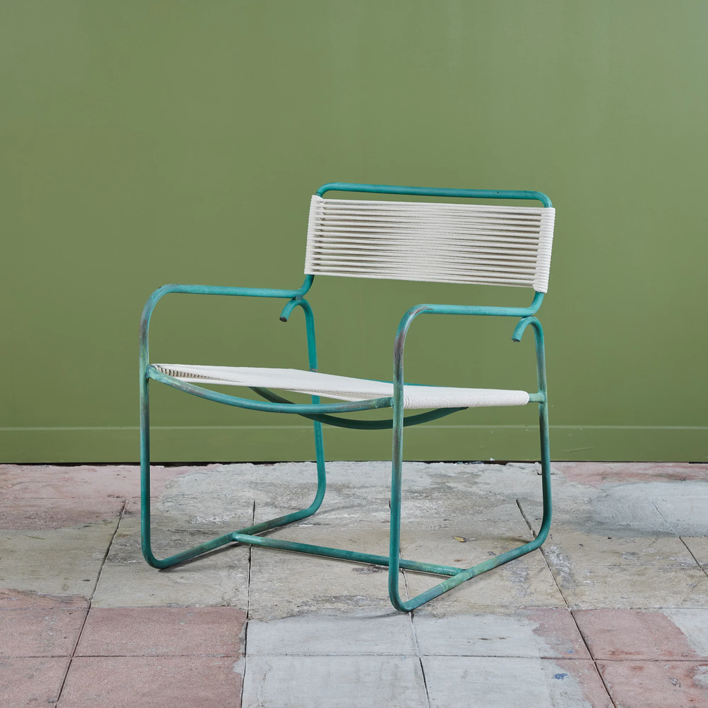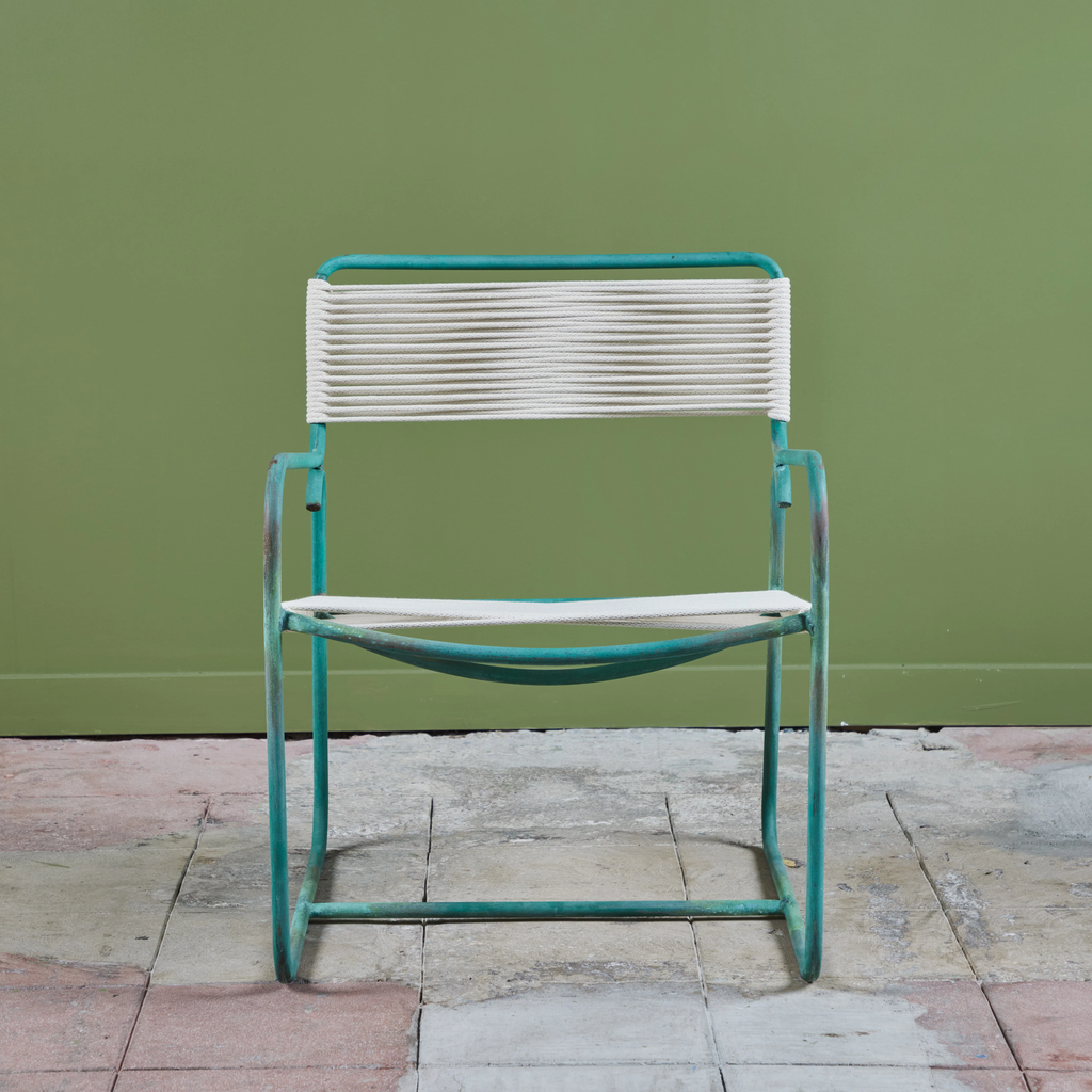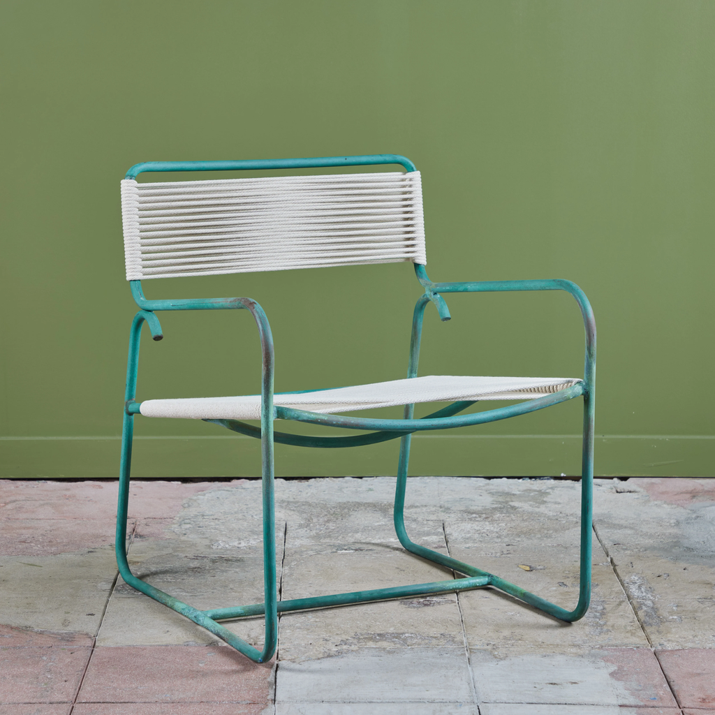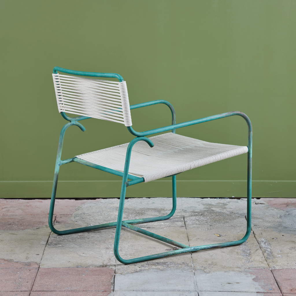All Walter Lamb patio furniture at DEN has been restored with the utmost attention to the designer’s original specifications. We rope all seating with a polished cotton sail cord that closely approximates what would have been offered by Brown Jordan when the line was originally retailed. While the cord will retain its shape and strength in most US climate zones, please expect to see some changes in color and texture over time due to weathering and natural accumulation of particulate matter. To maintain showroom condition, we advise covering your furniture when not in use, and especially during extreme conditions.