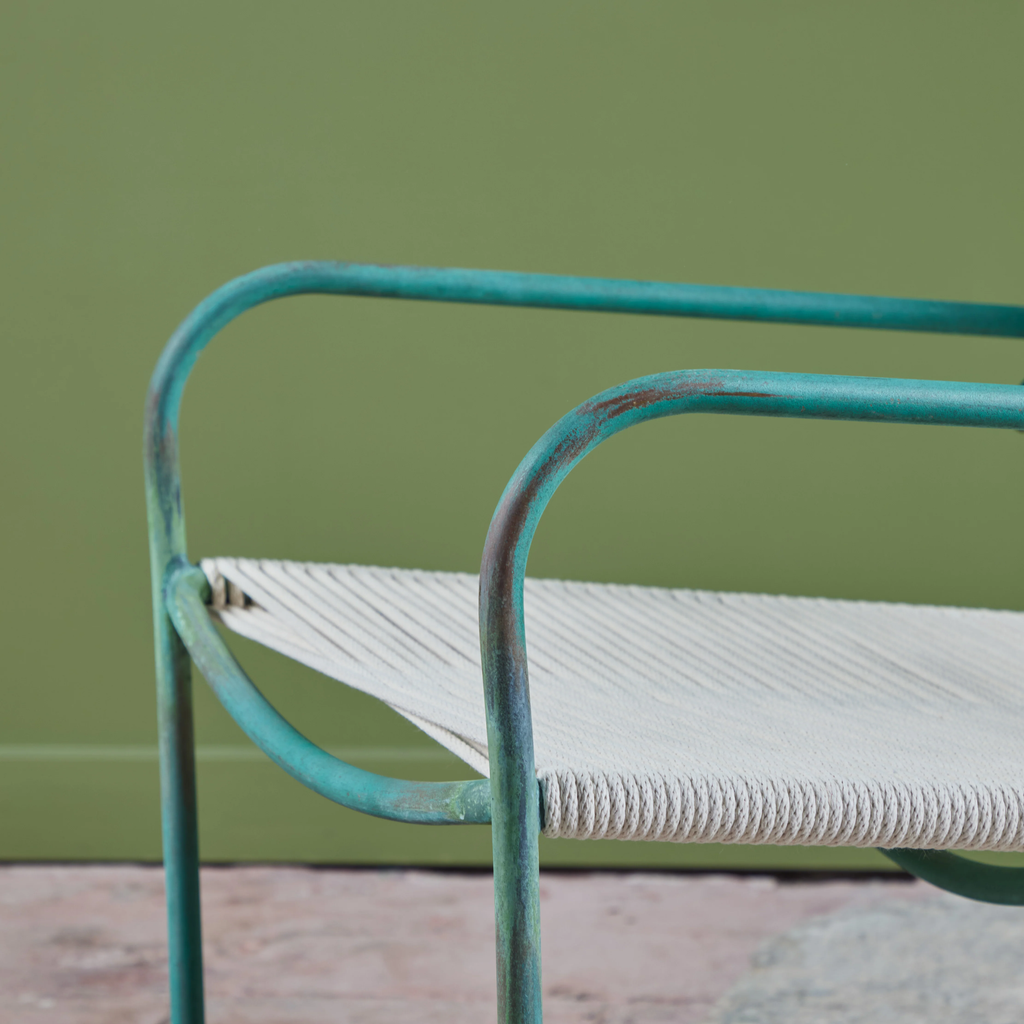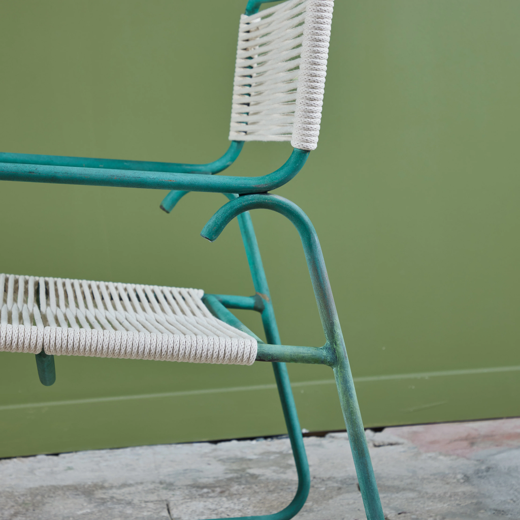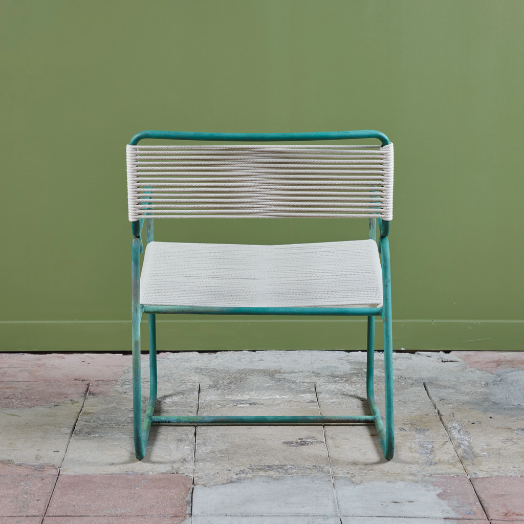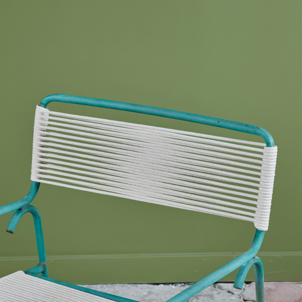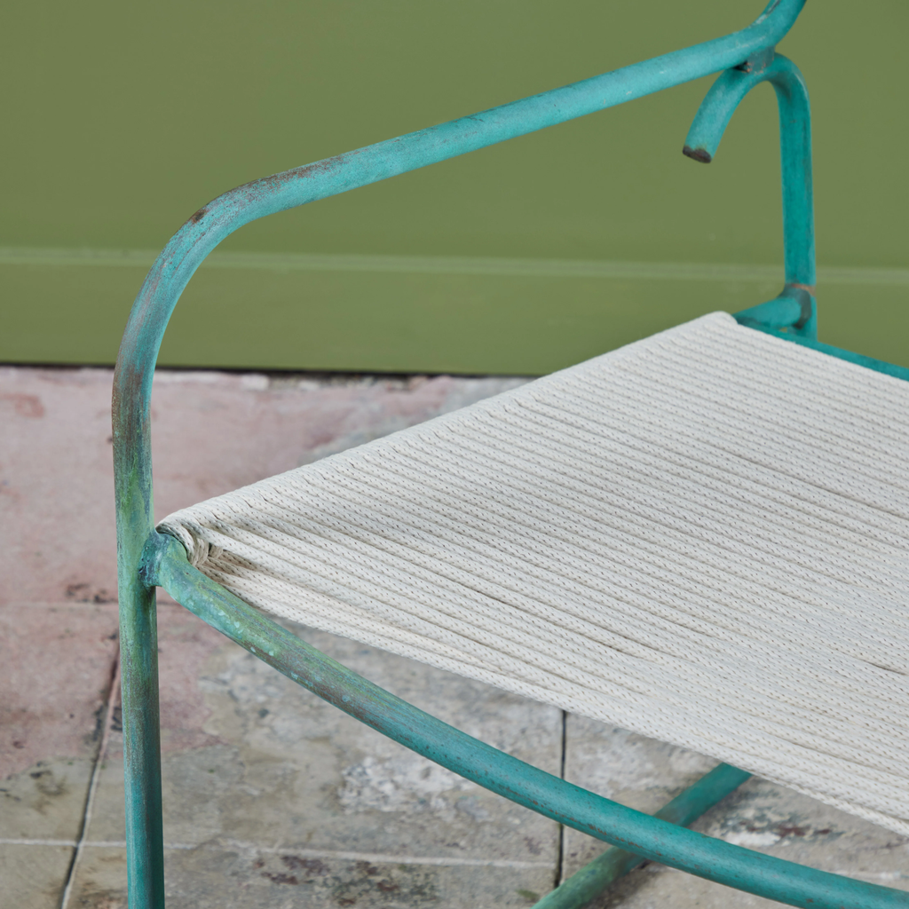 All Walter Lamb patio furniture at DEN has been restored with the utmost attention to the designer’s original specifications. We rope all seating with a polished cotton sail cord that closely approximates what would have been offered by Brown Jordan when the line was originally retailed. While the cord will retain its shape and strength in most US climate zones, please expect to see some changes in color and texture over time due to weathering and natural accumulation of particulate matter. To maintain showroom condition, we advise covering your furniture when not in use, and especially during extreme conditions.