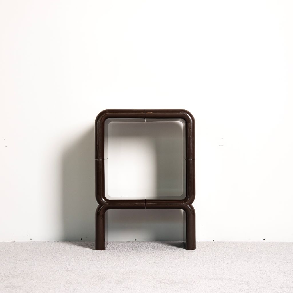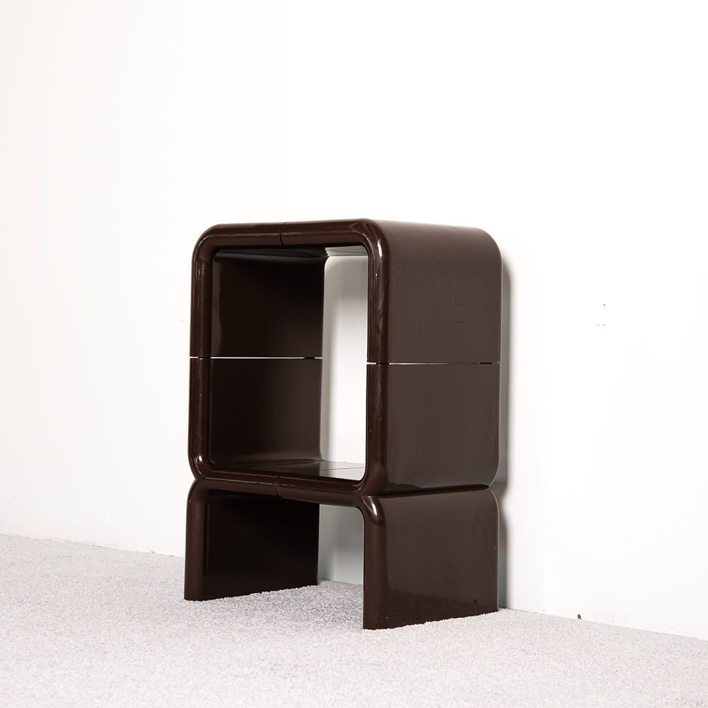 The Umbo shelving system was designed by Kay Leroy Ruggles and produced by Directional in 1970. The system is made entirely of ABS plastic and comprised of multiple modular pieces that can be reconfigured.