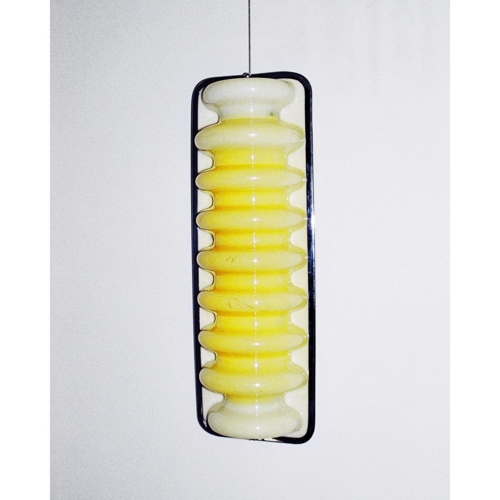Chromed metal structure, white methacrylate diffuser on fluorescent tube.