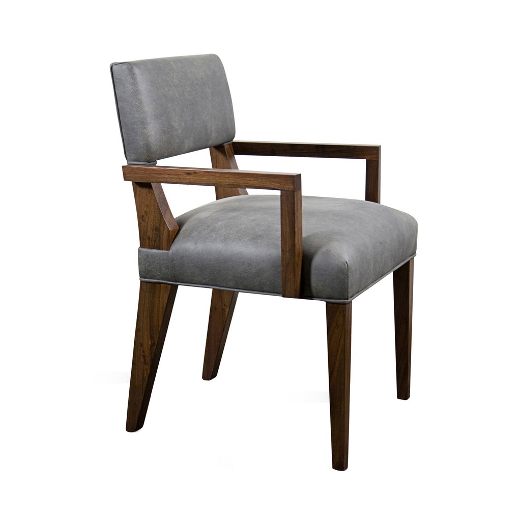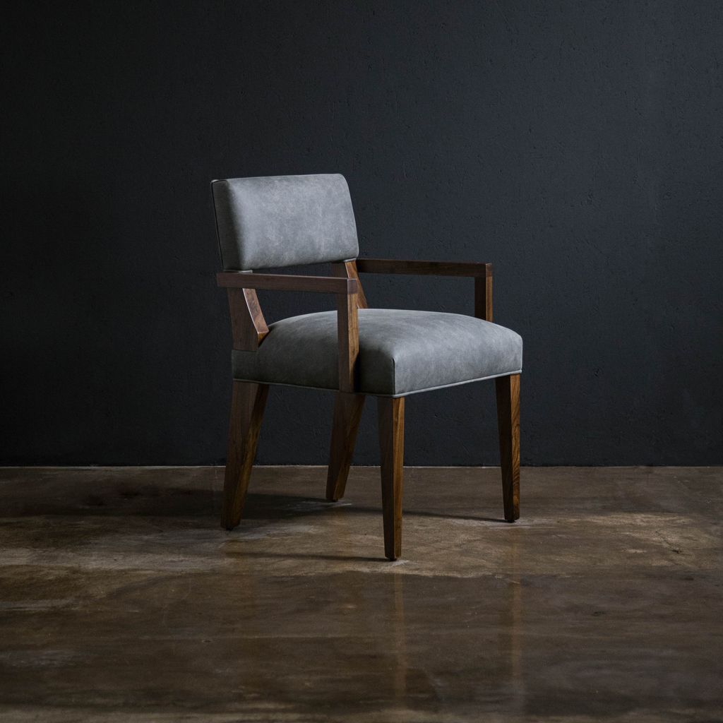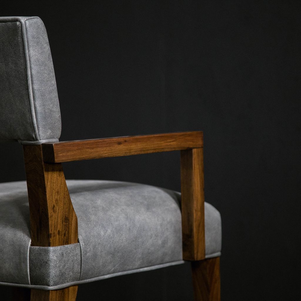 The Bruno chair offers unparalleled comfort with its understated style and is one of Costantini's most specified chairs. Usually in stock and available for quick ship in leather, or in the fabric of your choice. Shown in natural Argentine Rosewood and Rimini Gray leather but is available in any solid wood.