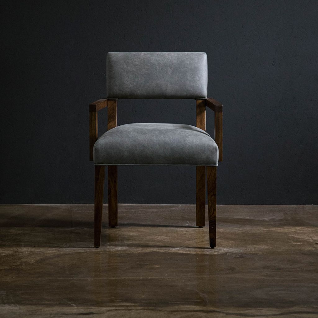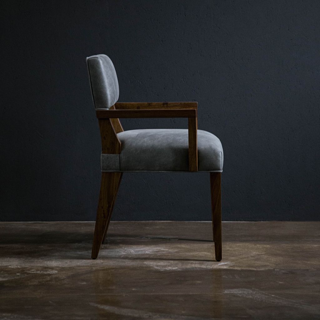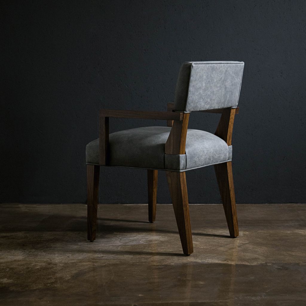 The Bruno chair offers unparalleled comfort with its understated style and is one of Costantini's most specified chairs. Usually in stock and available for quick ship in leather, or in the fabric of your choice. Shown in natural Argentine Rosewood and Rimini Gray leather but is available in any solid wood.