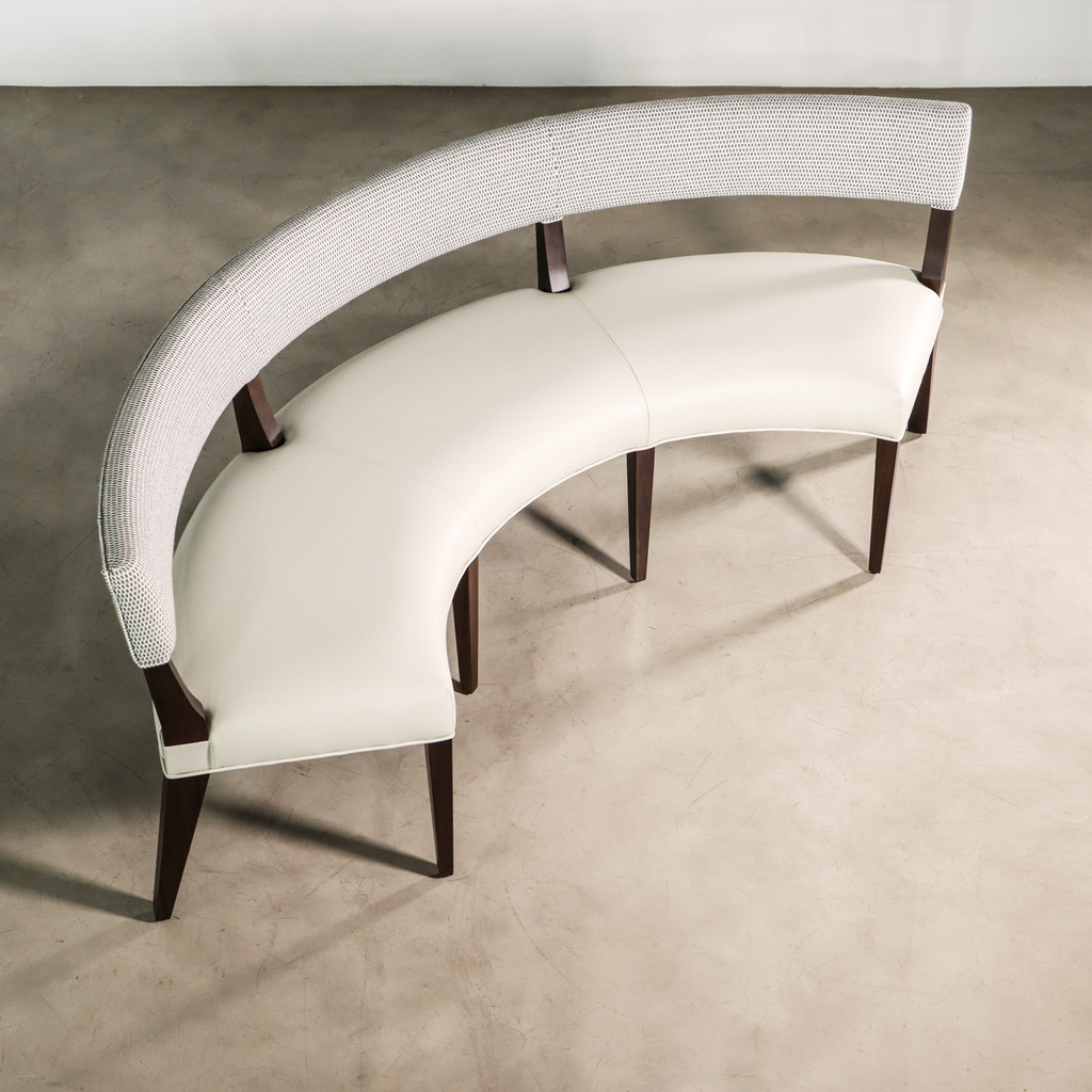 Any of Costantini's standard chairs can be made into a booth by repeating the back leg and building the rest of the structure to your specifications. The Bruno Booth thus borrows the styling from the chair of the same name, and can be made with a tight or loose seat. Available as shown or customizable to your desired size, shape, and finish.