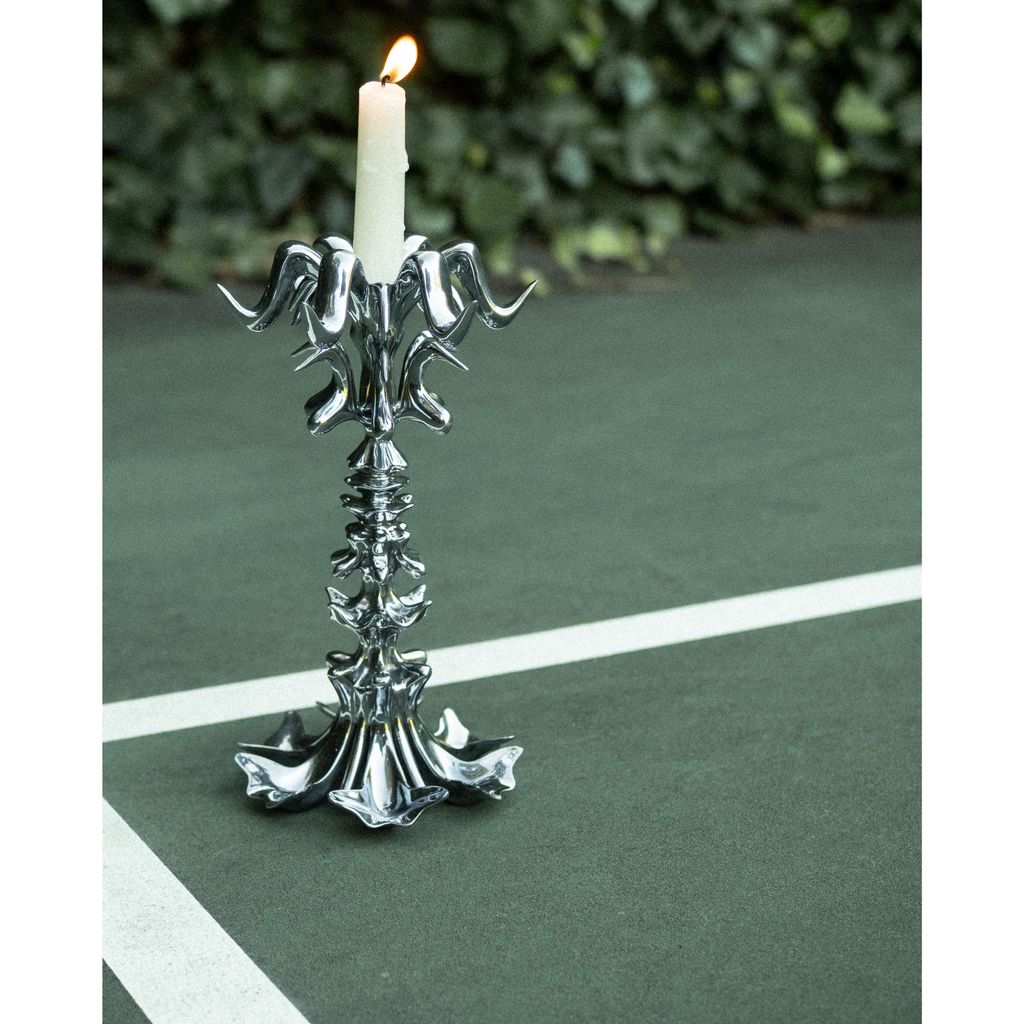 Mirror polished, 3D printed aluminum candle holder. Meant for 3/4" tapers.