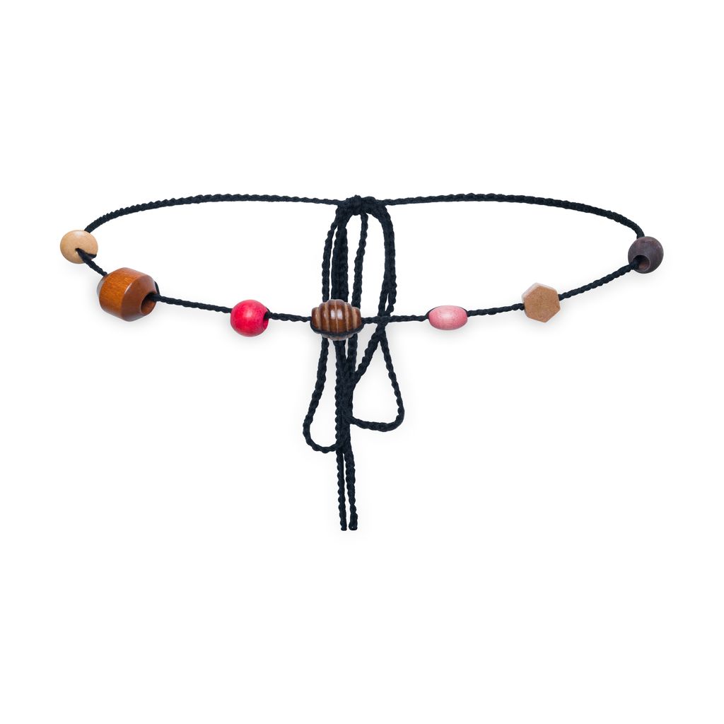 Buoy Belt 1 features hand crocheted cotton/merino from a small family owned farm in Nebraska with vintage wooden beads.