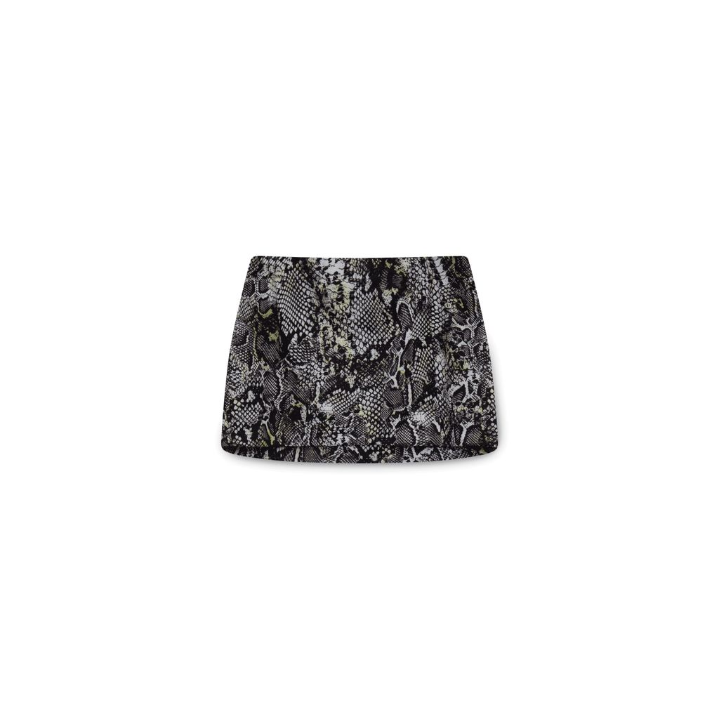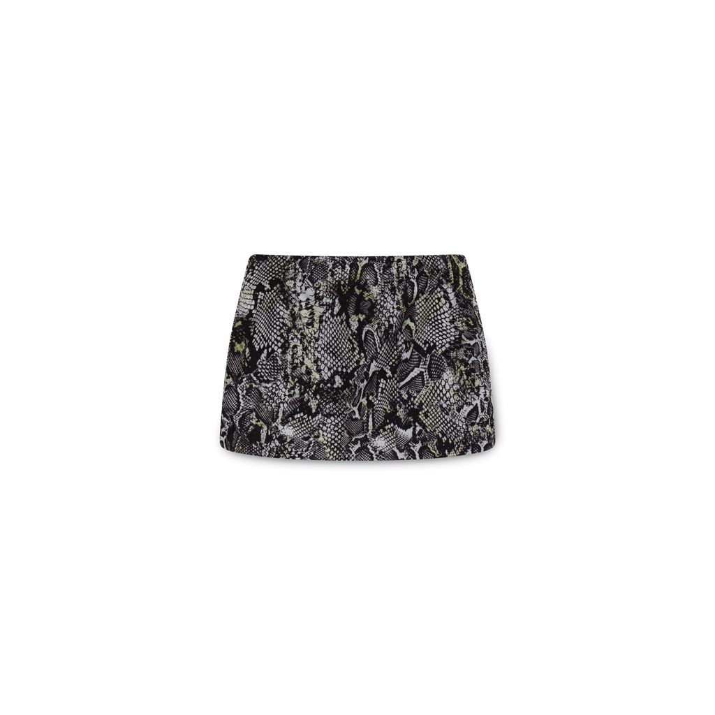 BVNY Snakeskin Print Mini Skirt features pullover fit.