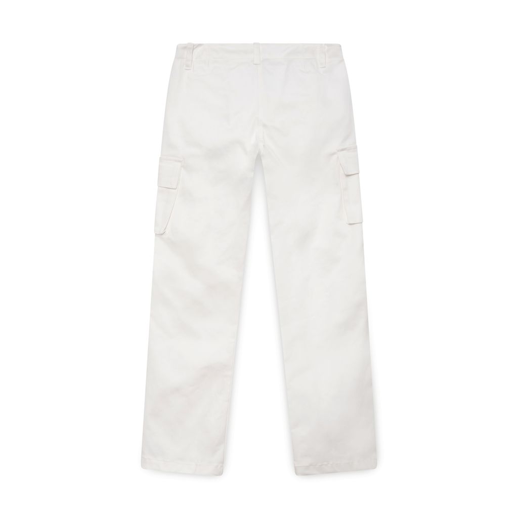 White Cargo Trousers features four front pockets and a straight leg fit.