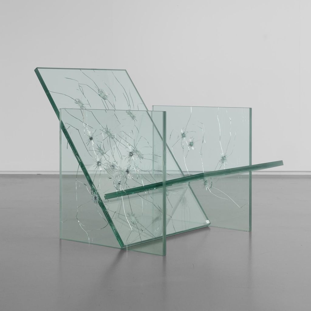 The War Chair c.1[bpg] is a powerful and thought-provoking artwork that challenges our perception of war and its impact on society. Created by an artist with a deep understanding of the human experience, this chair is made entirely out of bulletproof glass, with no visible connections, giving it an ethereal and otherworldly quality.