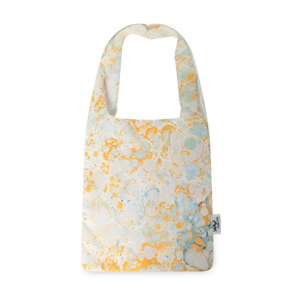 Cadre explores fiber arts through fabric scraps made into accessories, and yarns for tufting rugs. Lefty is a slow fashion brand that specializes in marbled fabric and garments. Cadre and Lefty came together to make the classic everyday shoulder bag to carry your essentials in. This bag is standard tote bag size and fits around the shoulder.