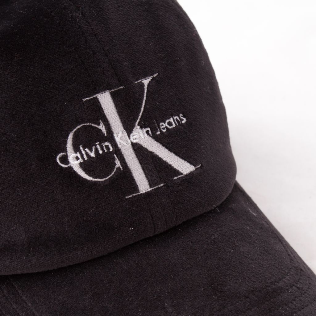 Like new, this Calvin Klein Jeans Baseball Cap is velour and features an embroidered classic CK logo in white on the front.