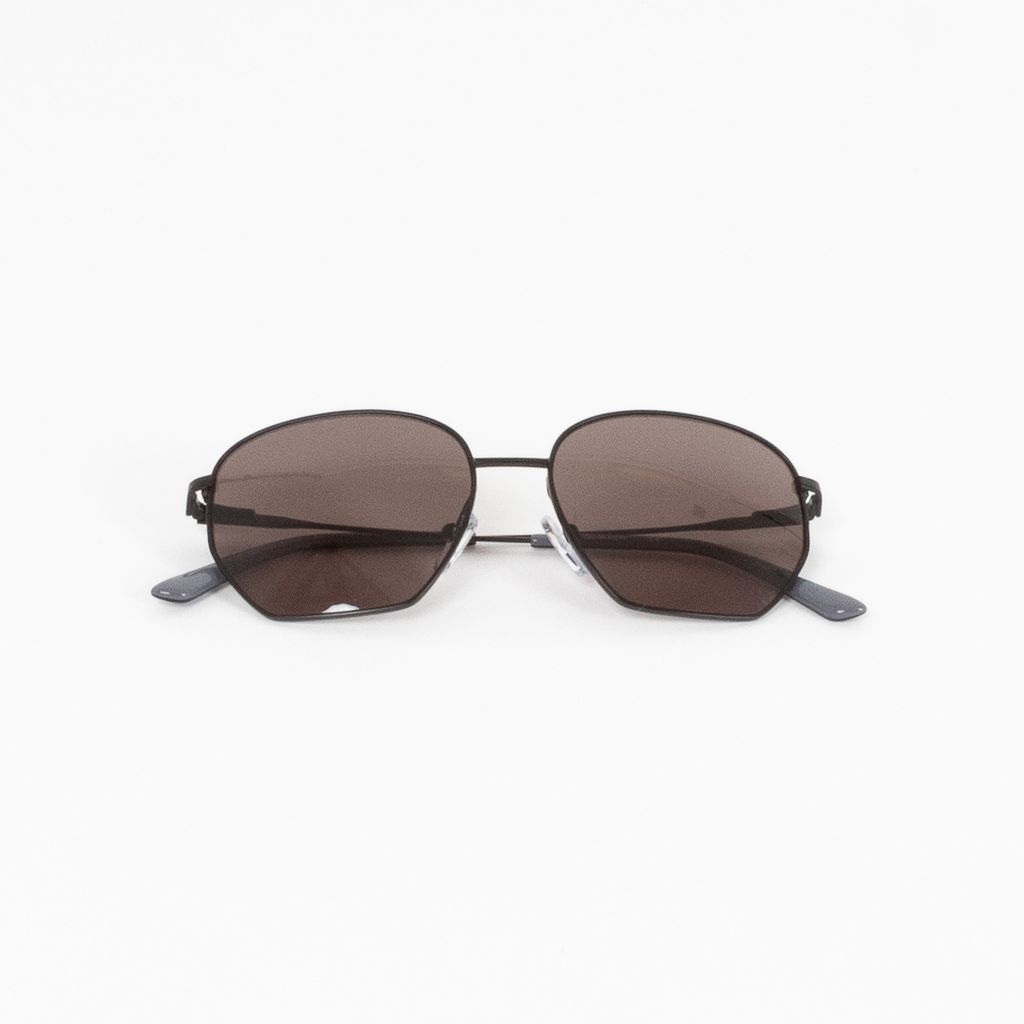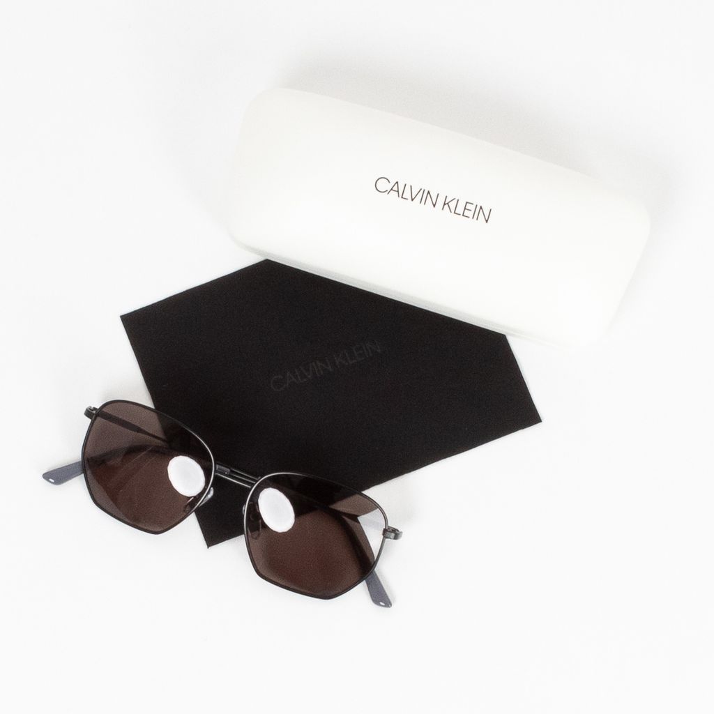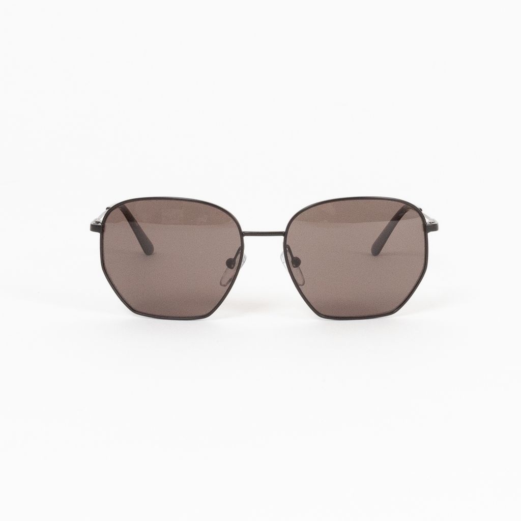 These sunnies from Calvin Klein are geometric chic with a unique lens design comprised of a rounded top and squared off bottom. Features geometric lens, black wire frame, clear nose pads, and thin arms with thick covers for behind the ears.