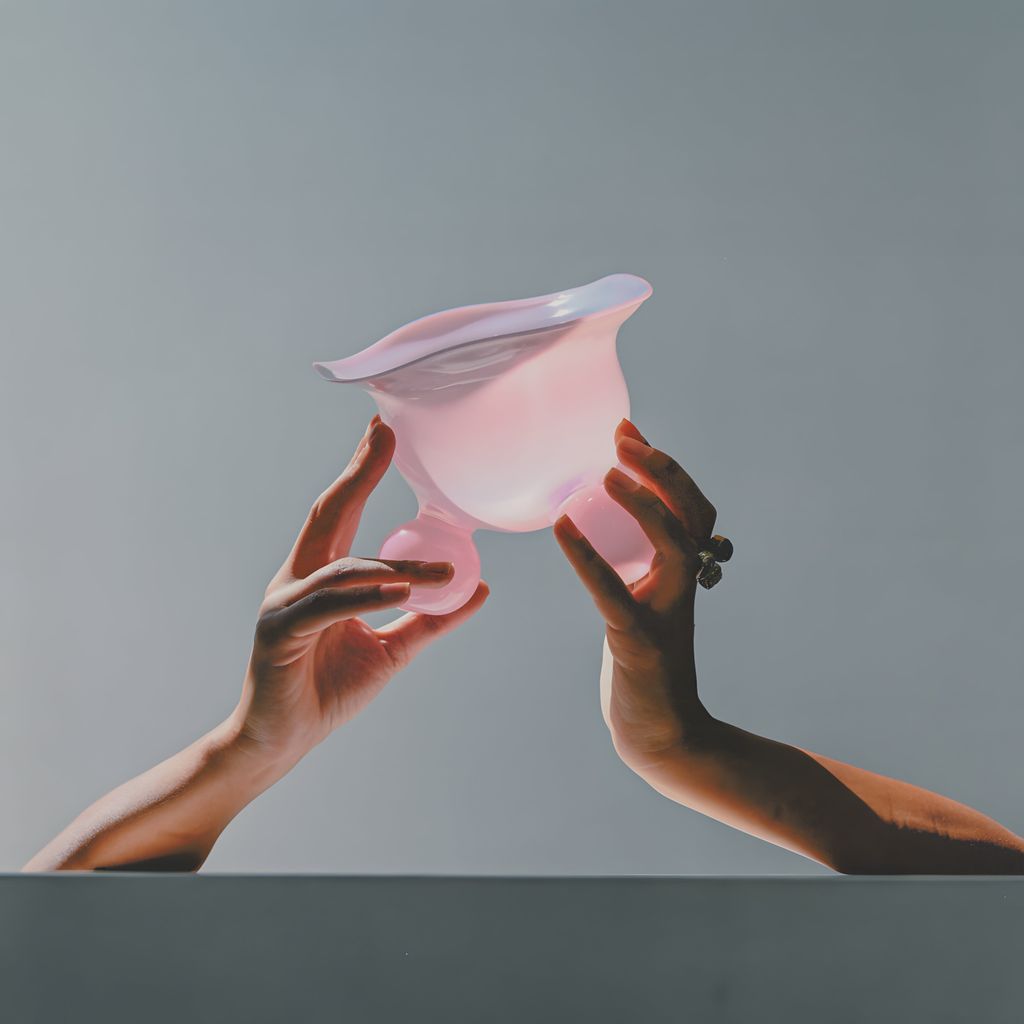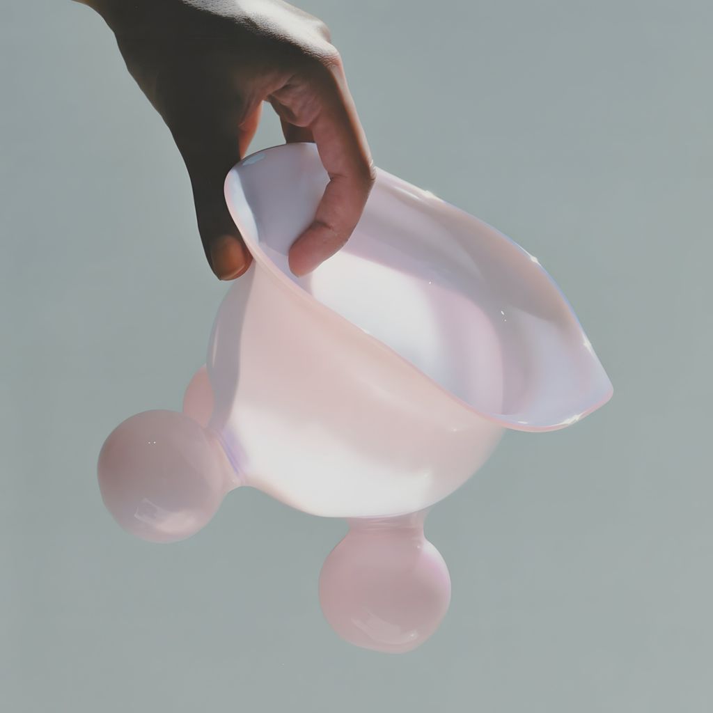 Her works revolve around her interest in the intersection between art and interior design. In the process of researching materials, Lameice found herself enchanted by the art of glass blowing. this glassware piece was Designed, lampworked, and hand-blown in " Jaba' village in the Palestinian Territories produced by the "Twam" family who has inherited this craft and passed it on from one generation to the next.