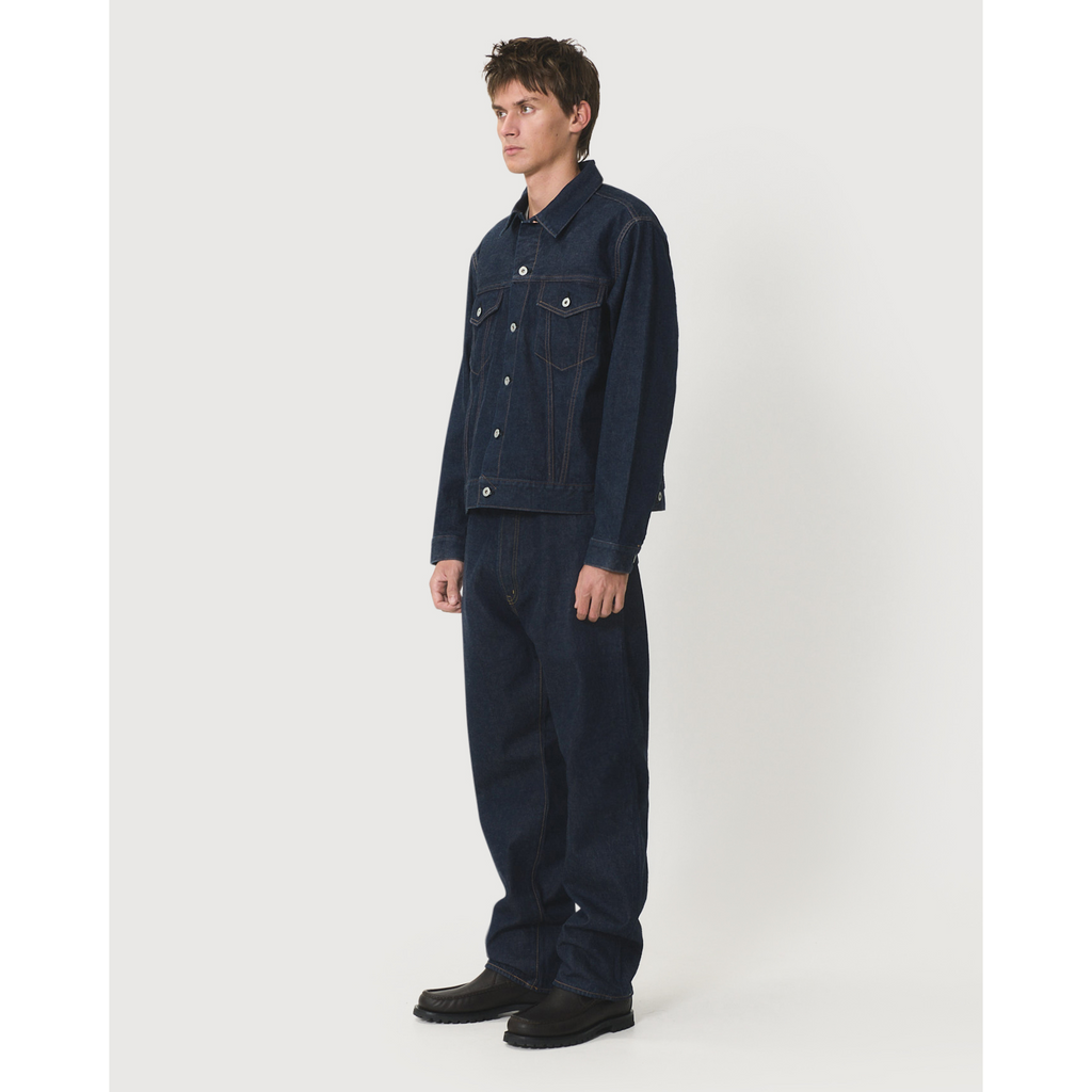 The Cantate Trucker Jacket in Indigo revisits the iconic Type III denim jacket through the lens of Japanese precision tailoring. Crafted from 13.5oz selvedge denim, it offers a structured yet comfortable silhouette that evolves beautifully with wear. Inspired by the original 1960s trucker jacket, the piece balances heritage workwear codes with Cantate’s refined and understated approach to modern design.