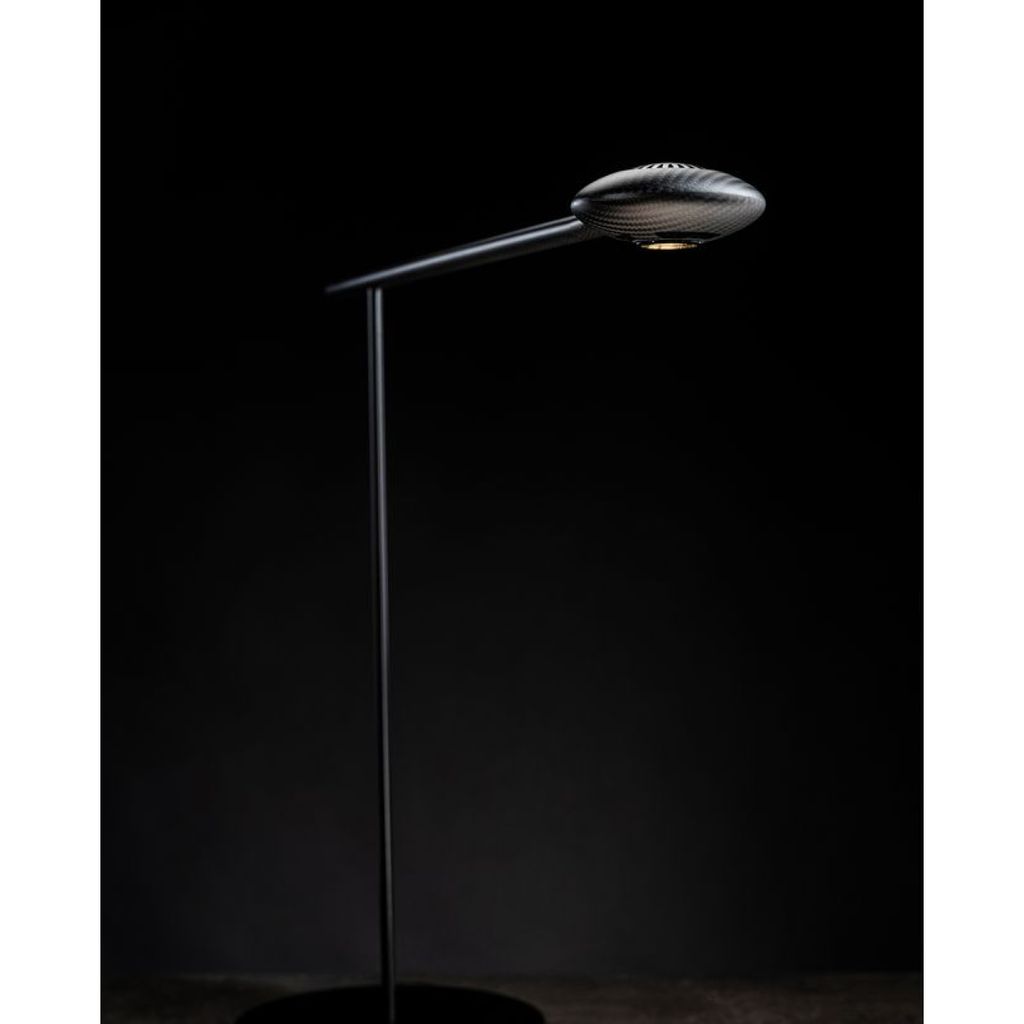 Made in carbon fiber with a metal base. Matte finish in natural carbon fiber appearance. Metal base in matte black. Custom colors available.