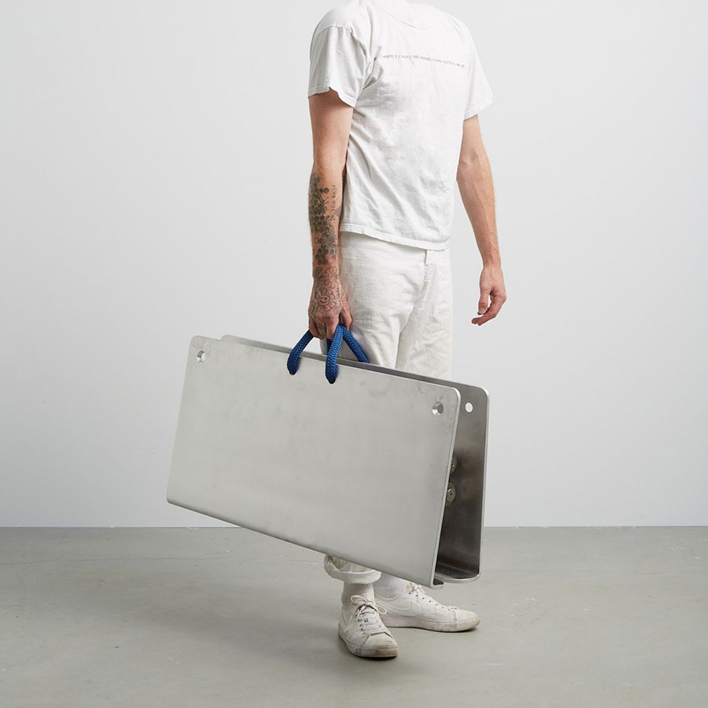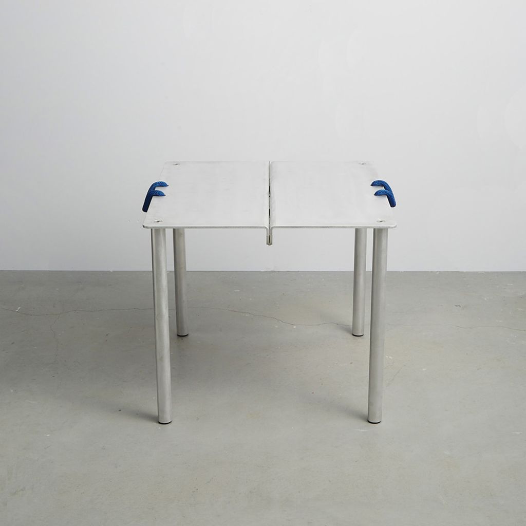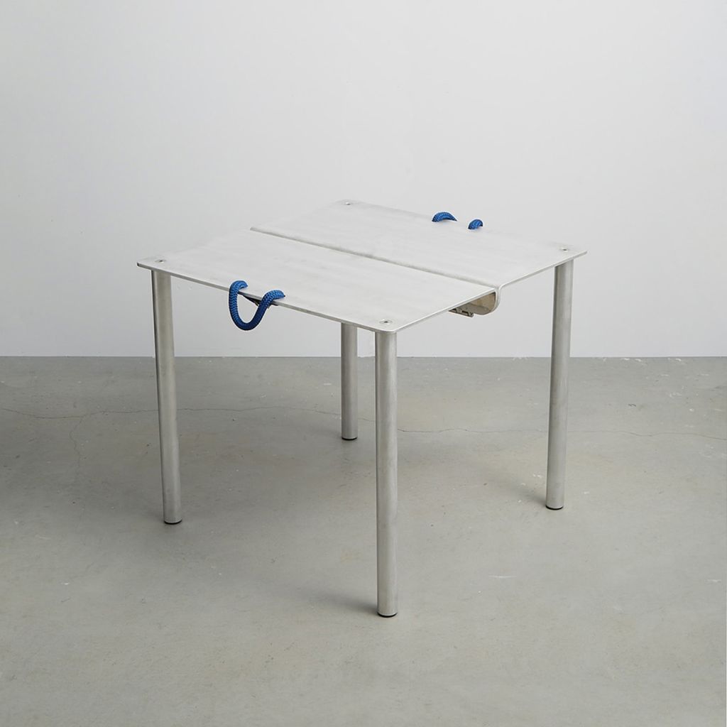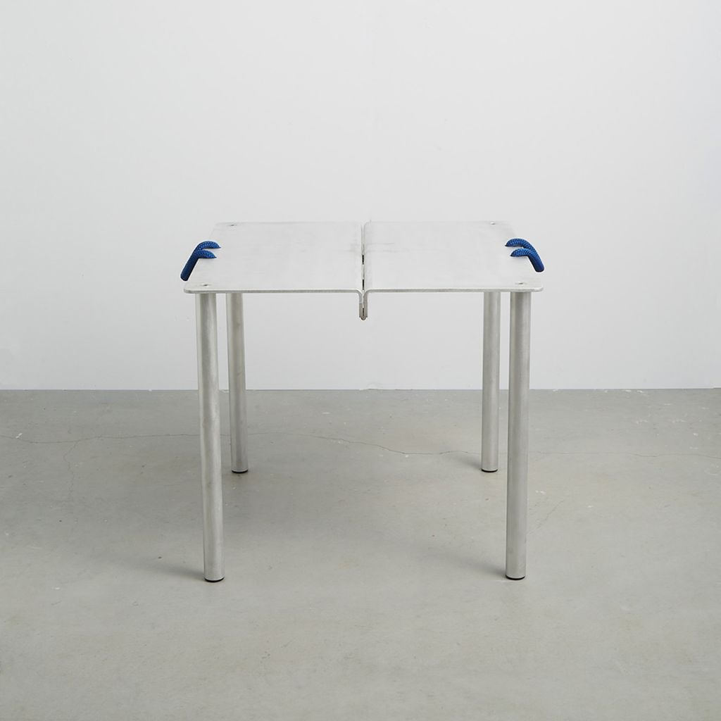 Card Table is designed after 18th c. English Folding Card Table. Aluminum construction with custom parts, 3/4" nylon rope handles. Made in USA.