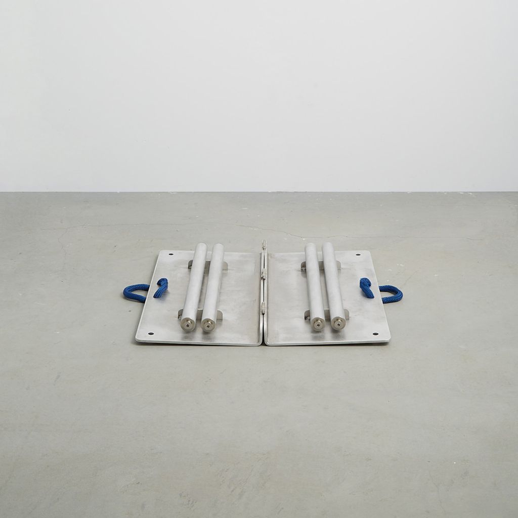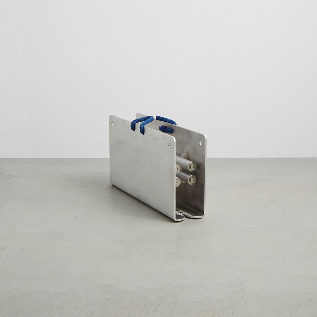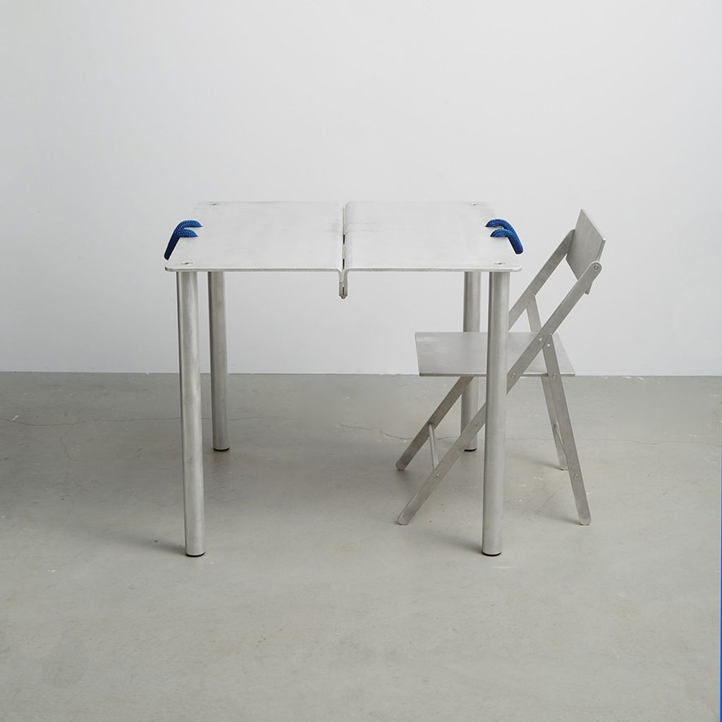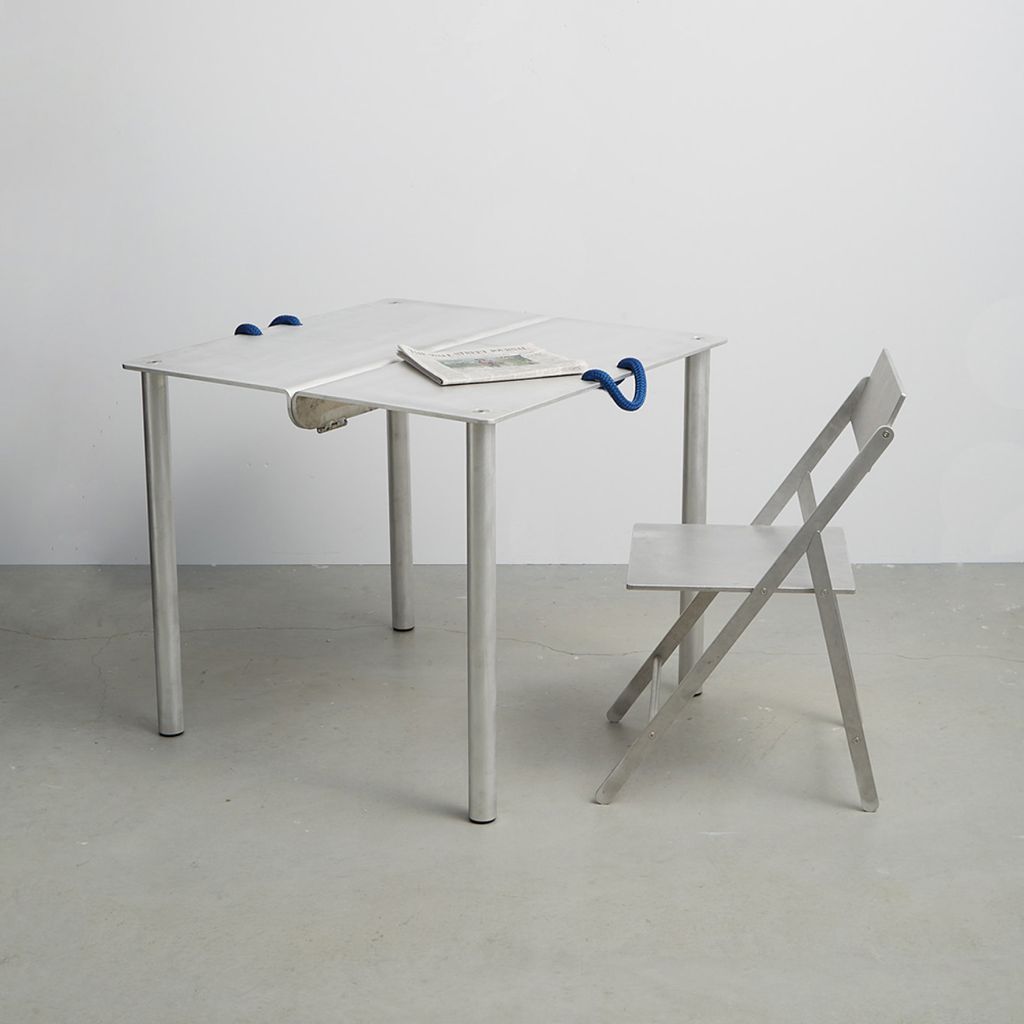 Card Table is designed after 18th c. English Folding Card Table. Aluminum construction with custom parts, 3/4" nylon rope handles. Made in USA.
