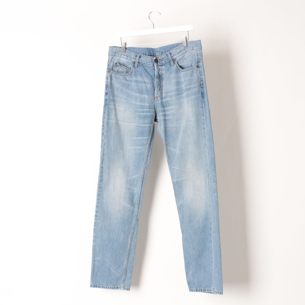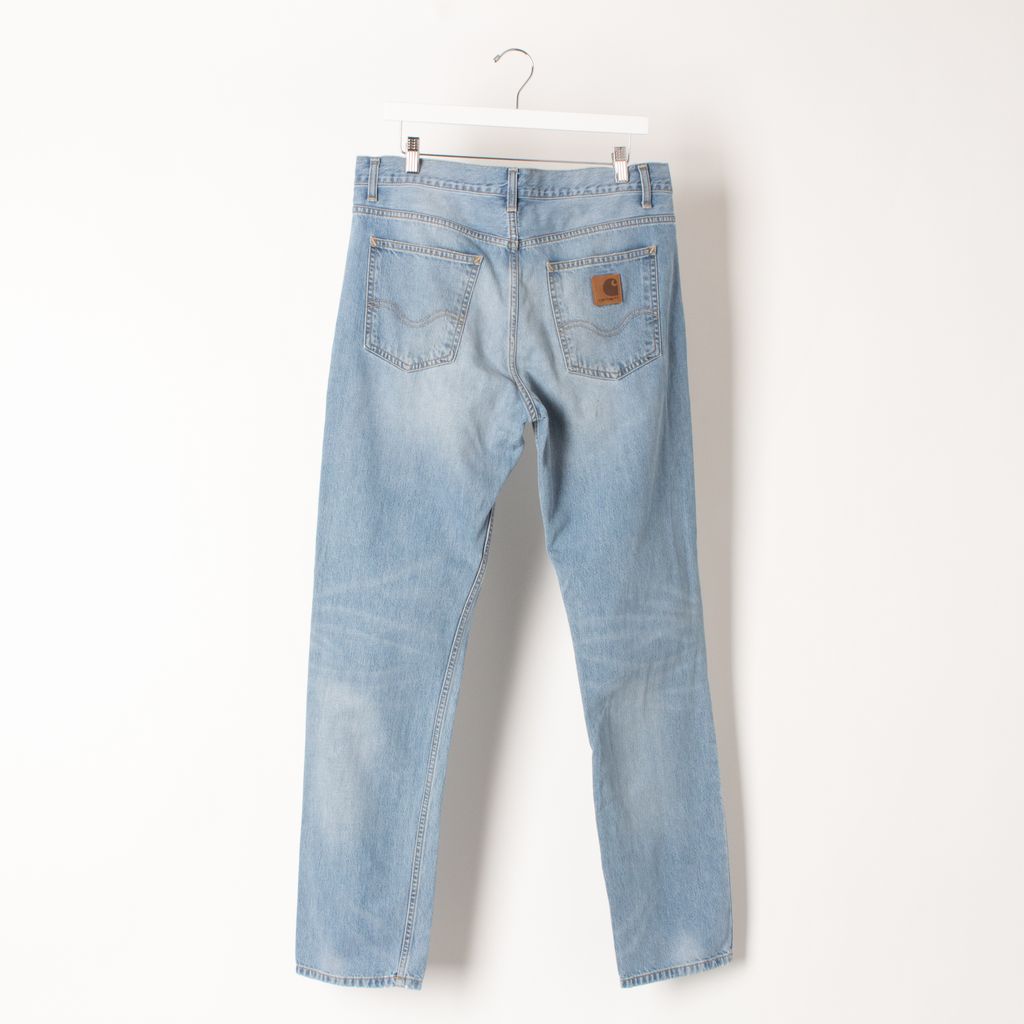 Gently worn men's Carhartt WIP Texas II Pant. 100% cotton with a relaxed tapered fit and regular waist. Feature metal rivets or bartack stitching at vital sress points, a button fly closure, back yoke and a leather square label.